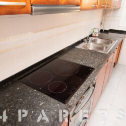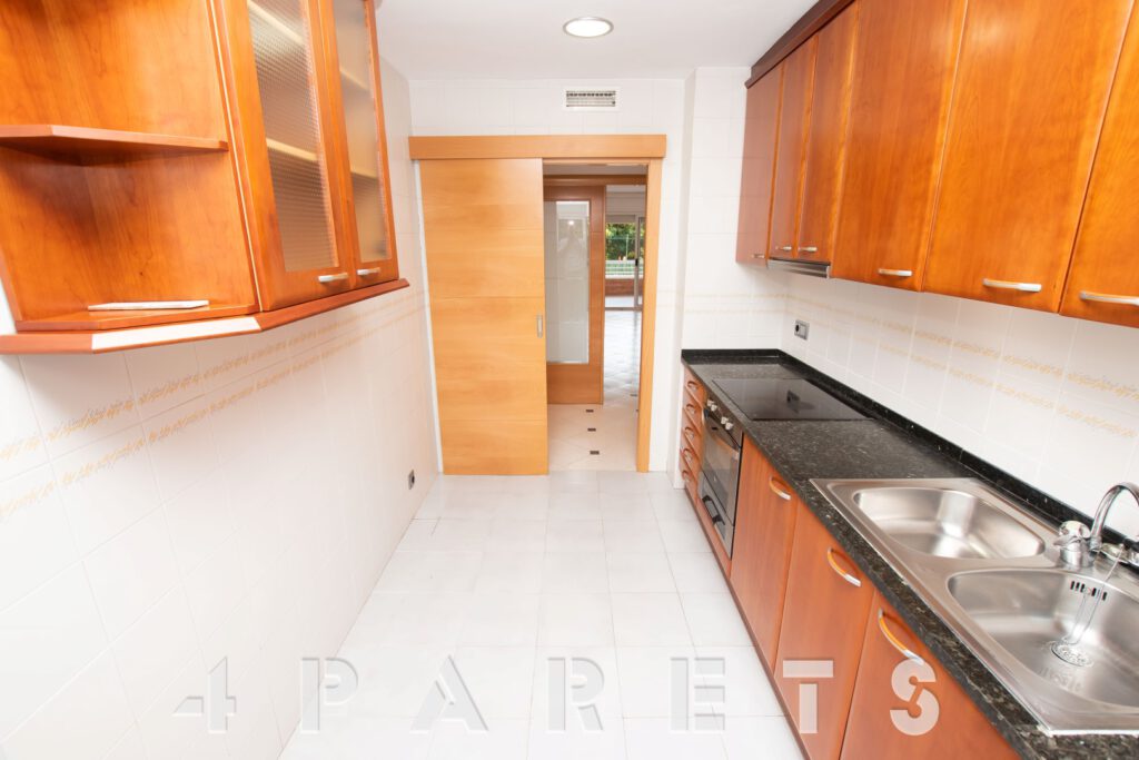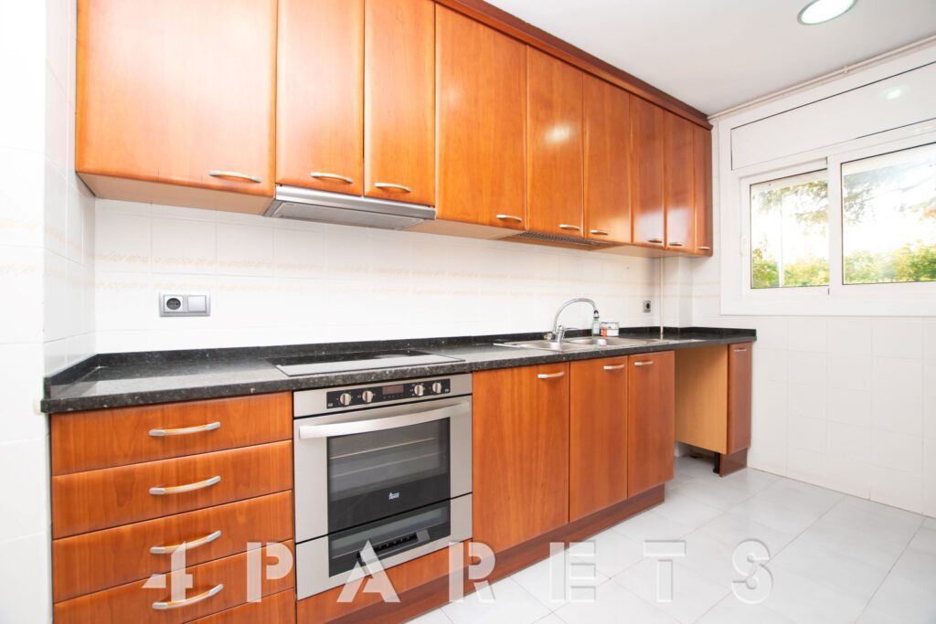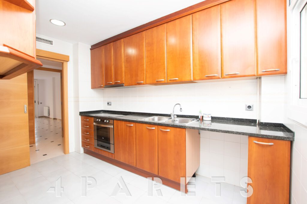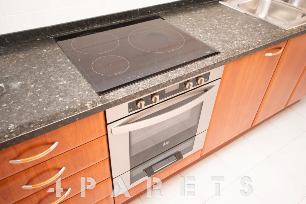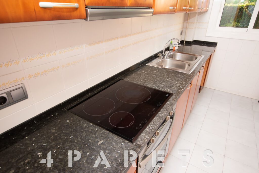 La cocina es independiente del comedor, equipada con vitrocerámica eléctrica, espacio para una mesa y acceso al lavadero.