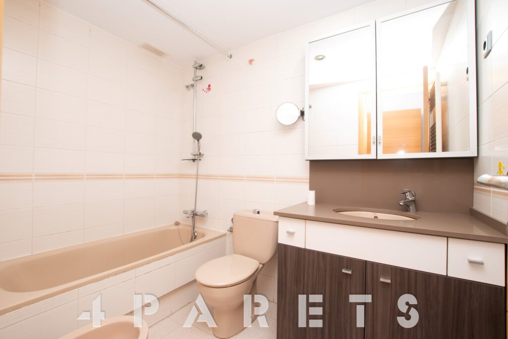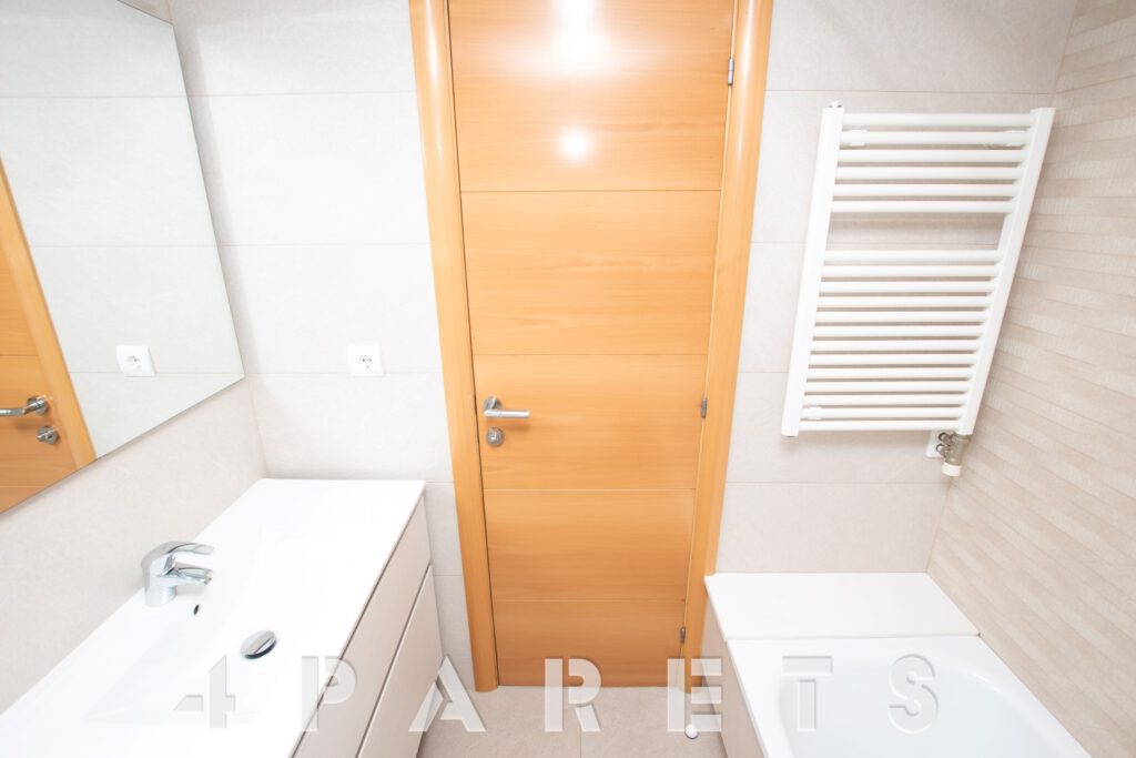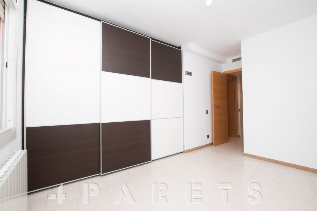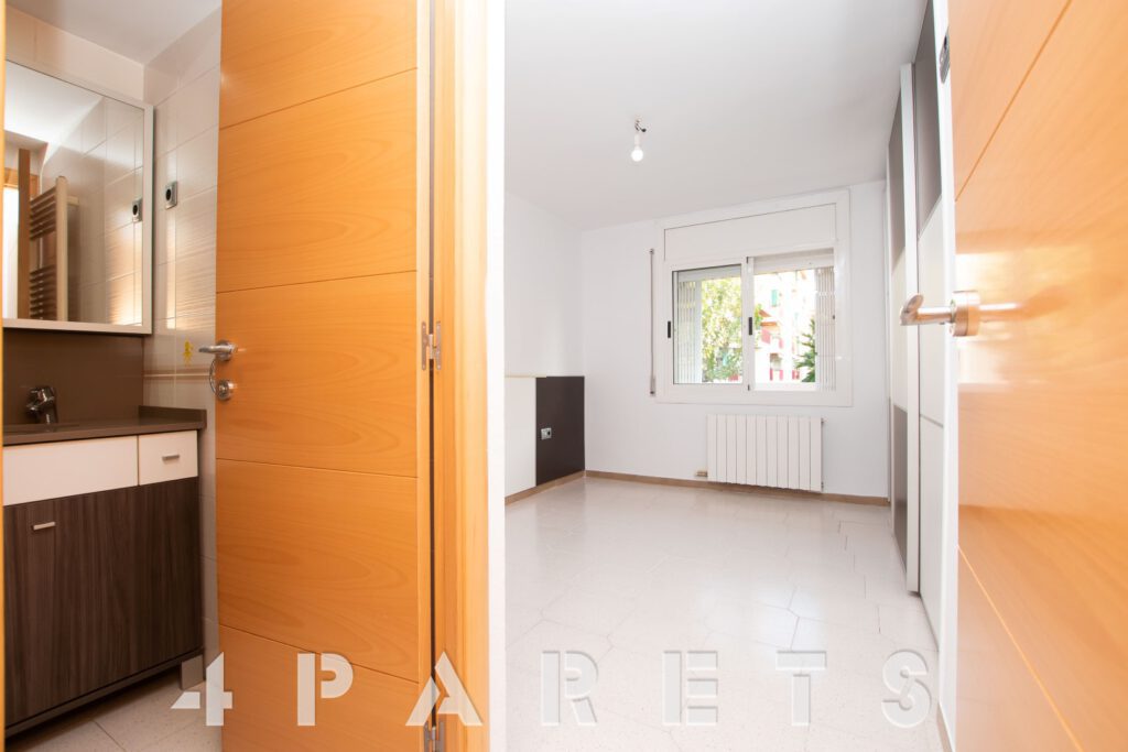 En la zona de noche, disponemos de 4 habitaciones (dos individuales, una doble y una suitte de matrimonio con armario empotrado y baño propio). Para las tres habitaciones restantes, disponemos de un segundo baño equipado con bañera. En el pasillo del piso tenemos un gran armario empotrado.