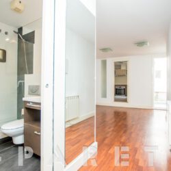 Su distribución es práctica, sencilla y cómoda. Solo entrar accedemos al salón comedor donde, con cuatro muebles bien puestos, queda un espacio agradable. Desde el salón podemos salir a un pequeño patio con capacidad para colocar una mesita y un par de sillas. A continuación, y a un escalón de diferencia, accedemos a la cocina, independiente, exterior y equipada con vitrocerámica, horno, nevera y lavadora. Si nos dirigimos a la zona de noche, nos encontramos primero con el baño, equipado con plato de ducha. Y, por último, accedemos al dormitorio, amplio, exterior con balcón a la calle y equipado con gran armario y un mueble tipo escritorio / estantería hecho a medida.