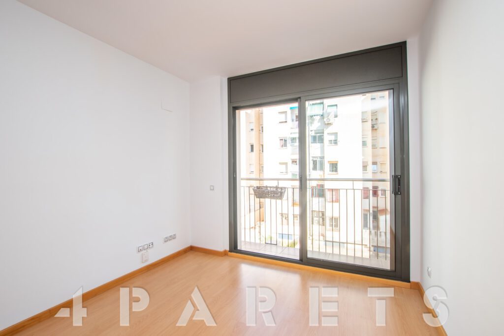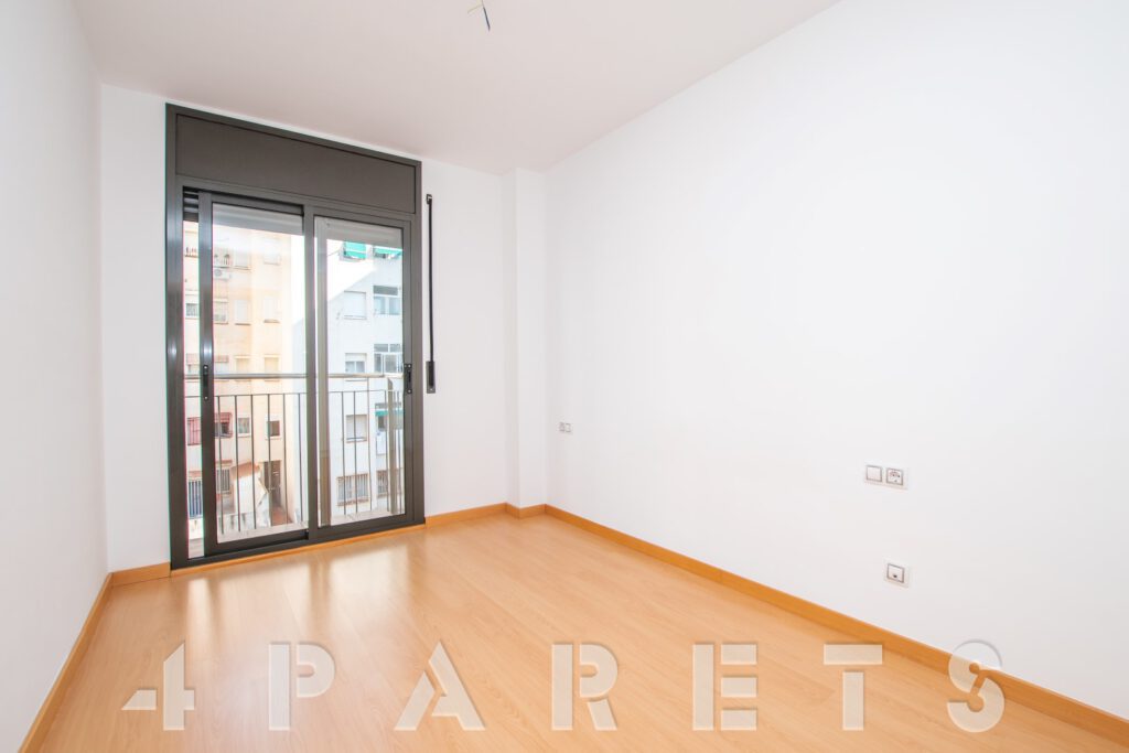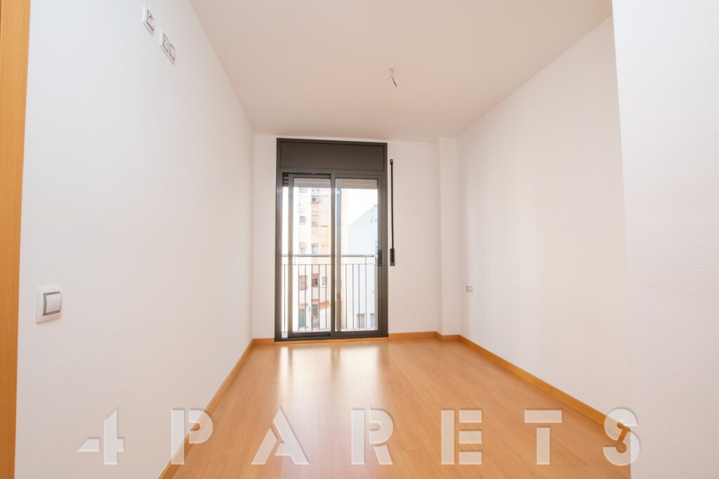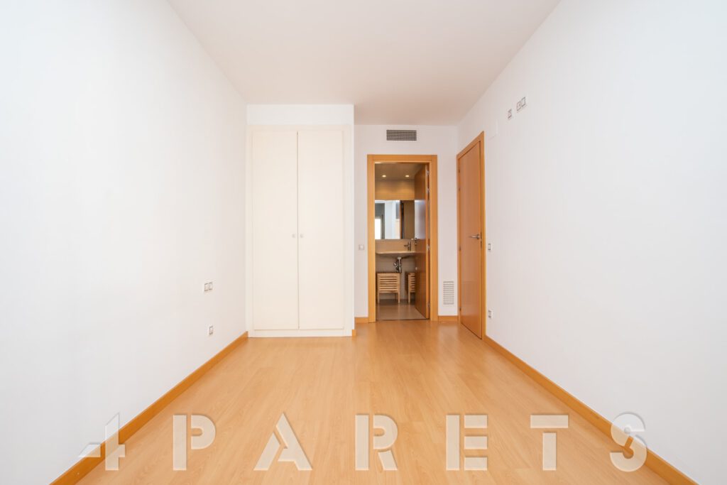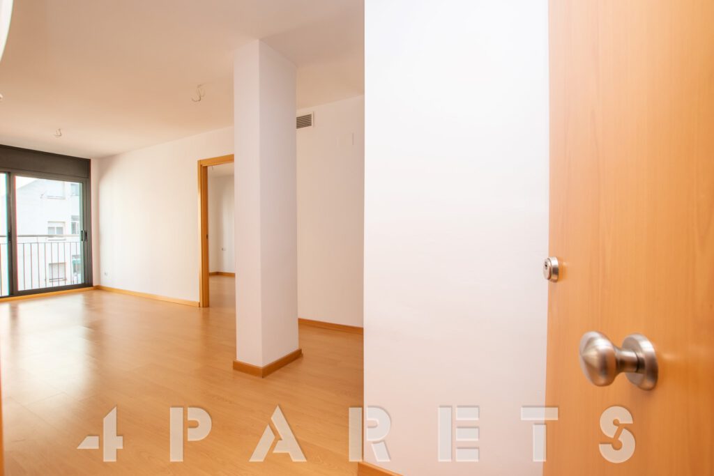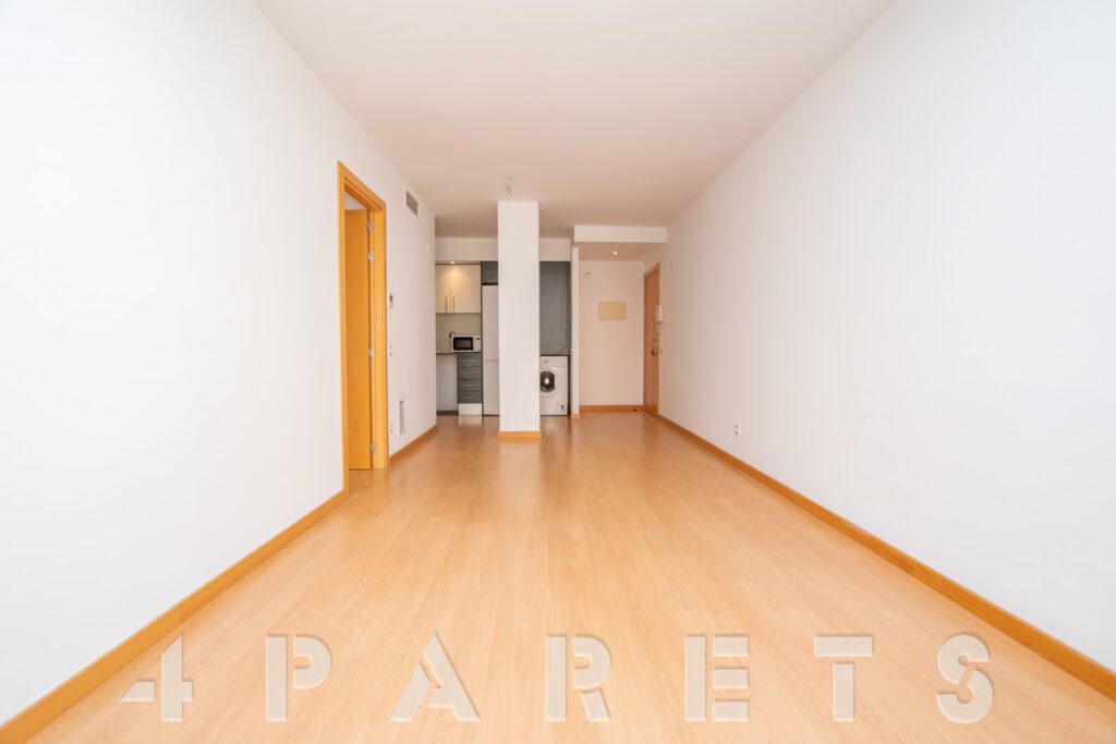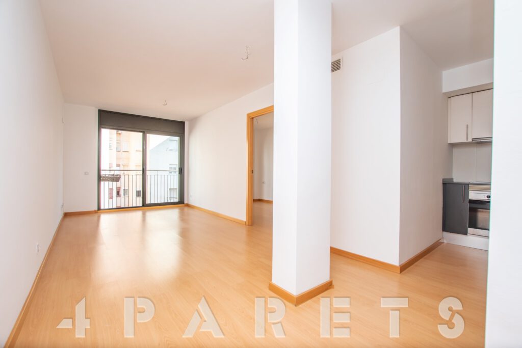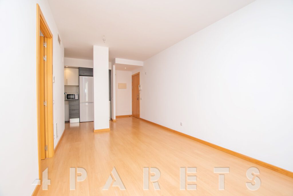 – Entramos al piso mediante un pequeño distribuidor y nos queda a mano de derecha la cocina, abierta al comedor aunque da la sensación de ser prácticamente independiente. Con mucho espacio de almacenaje y viene equipada con vitrocerámica, nevera y lavadora. Acto seguido tenemos la zona de comedor y salón, en dos ambientes y con salida a un balcocinto que también comunica con el dormitorio. Este, es un dormitorio doble, con armario empotrado y con el cuarto de baño incorporado, de tres piezas y con plato de ducha con mampara de cristal.