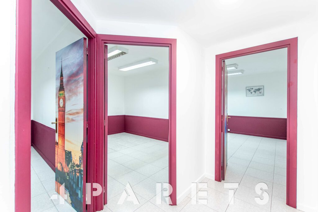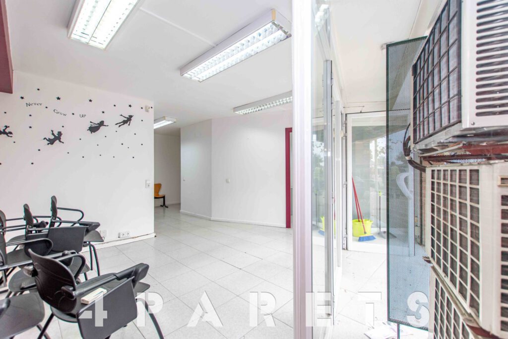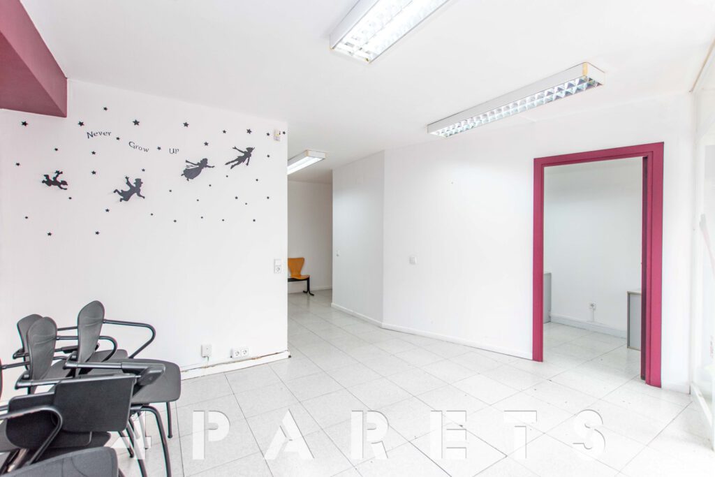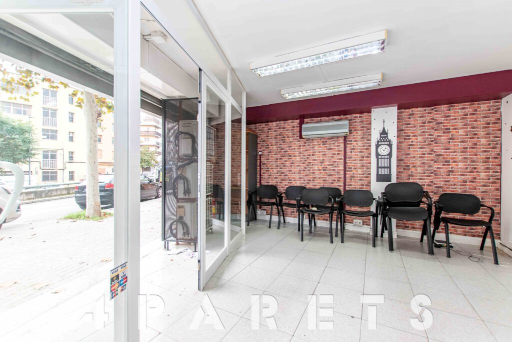 El local está formado por unos 116m2 y se sitúa en planta al mismo nivel de la calle, la cual dispone de una amplia acera y un carga y descarga prácticamente delante. Actualmente está totalmente habilitado para el uso de una academia pero, como comentábamos anteriormente, las divisiones de las que dispone son fácilmente modificables.