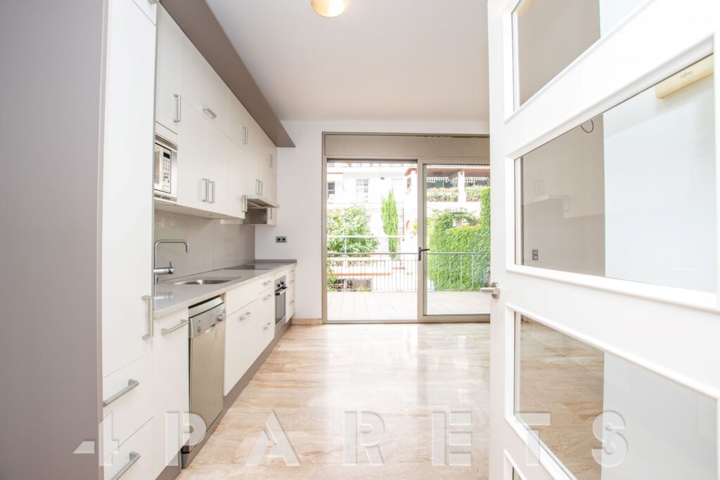 Cocina muy funcional y con gran cantidad de almacenaje. Equipada con electrodomésticos como lavadora y lavavajillas.