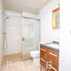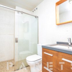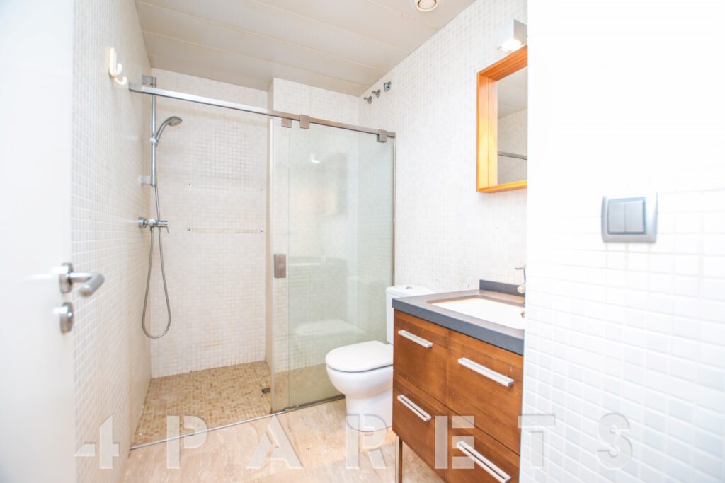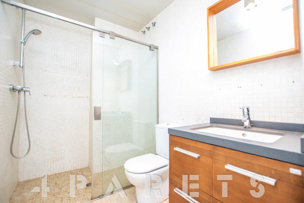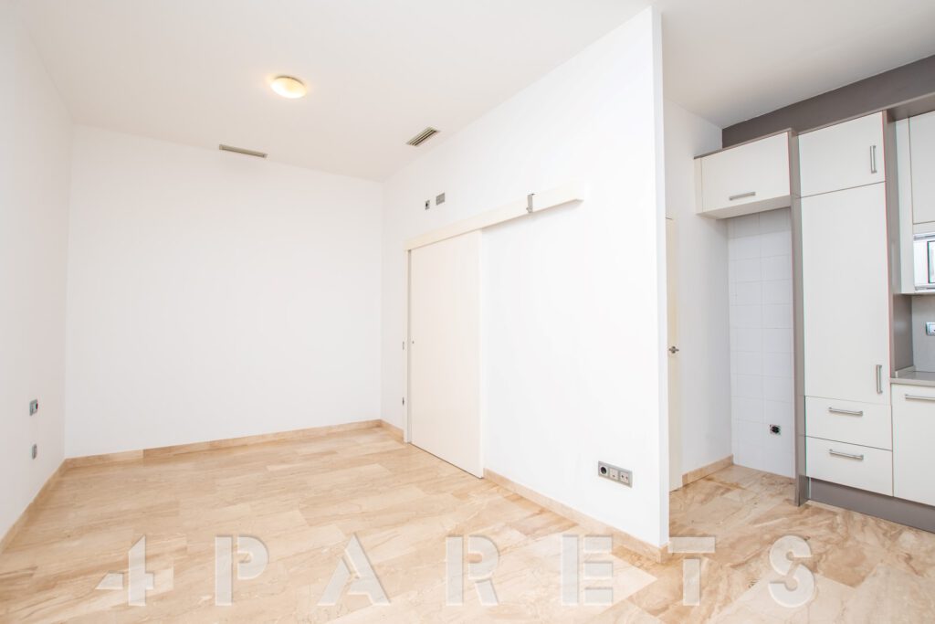 El espacio del salón queda abierto al dormitorio, pero se podría realizar la separación con un simple armario o librería. En la entrada del piso tenemos el cuarto de baño, de buen tamaño y con un amplio plato de ducha.