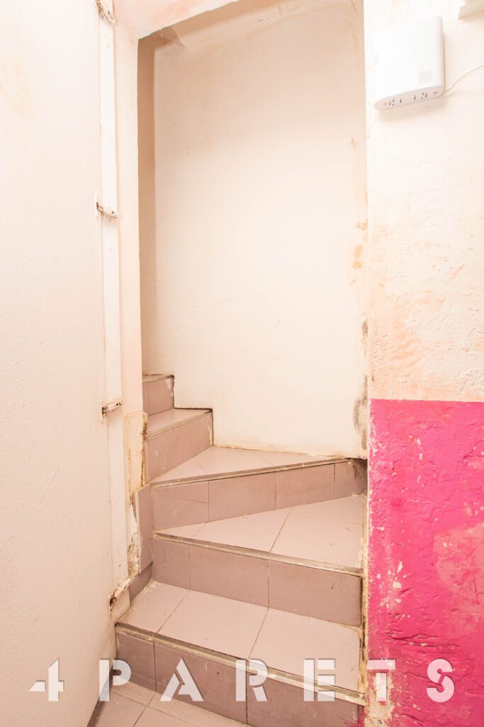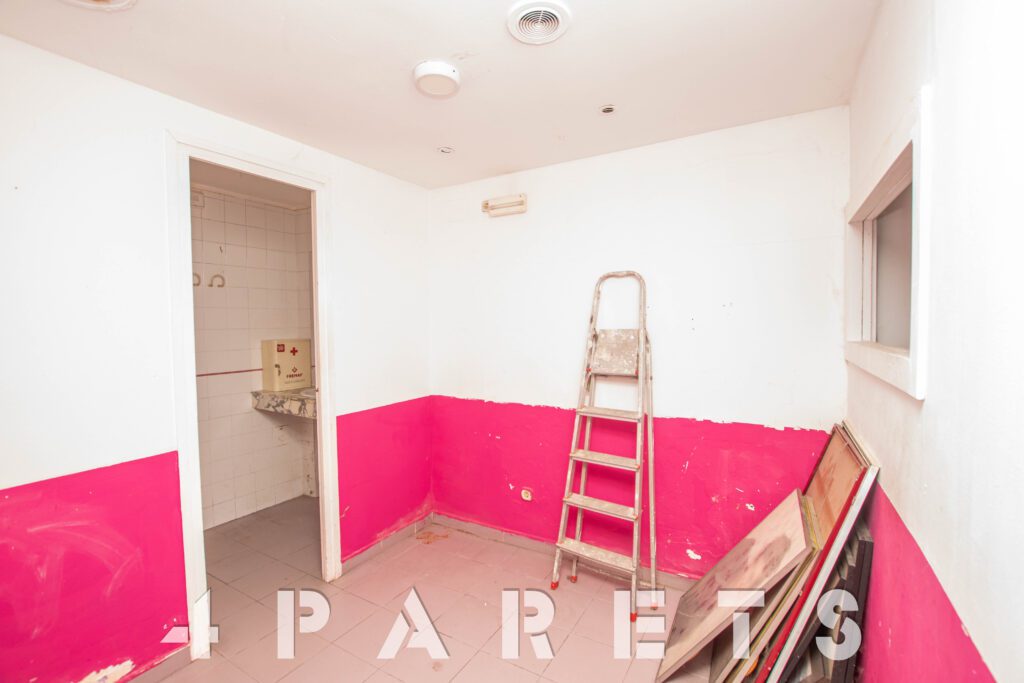 En la planta principal encontramos una zona de sala de entrada con recepción, dos espacios tipo despacho o box, una zona de lavadero (donde se puede hacer un aseo) y la escalera que nos sube a la planta superior, con un espacio abierto, un aseo y una pequeña habitación.