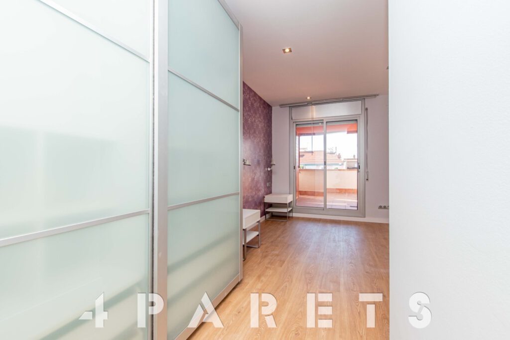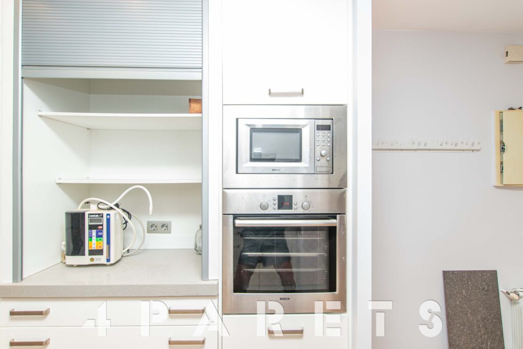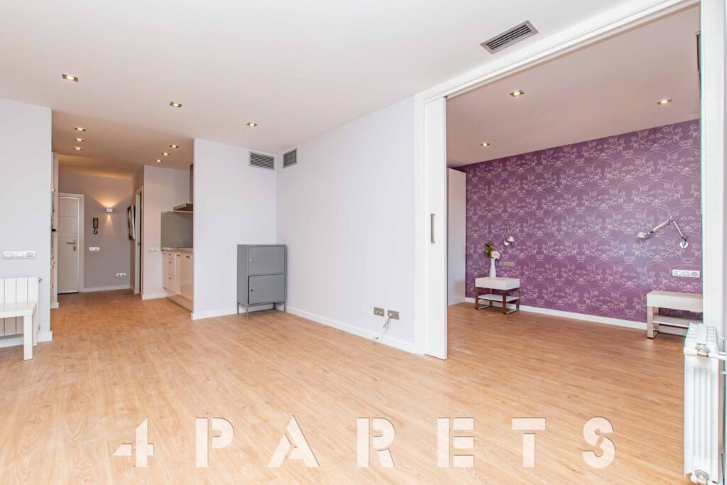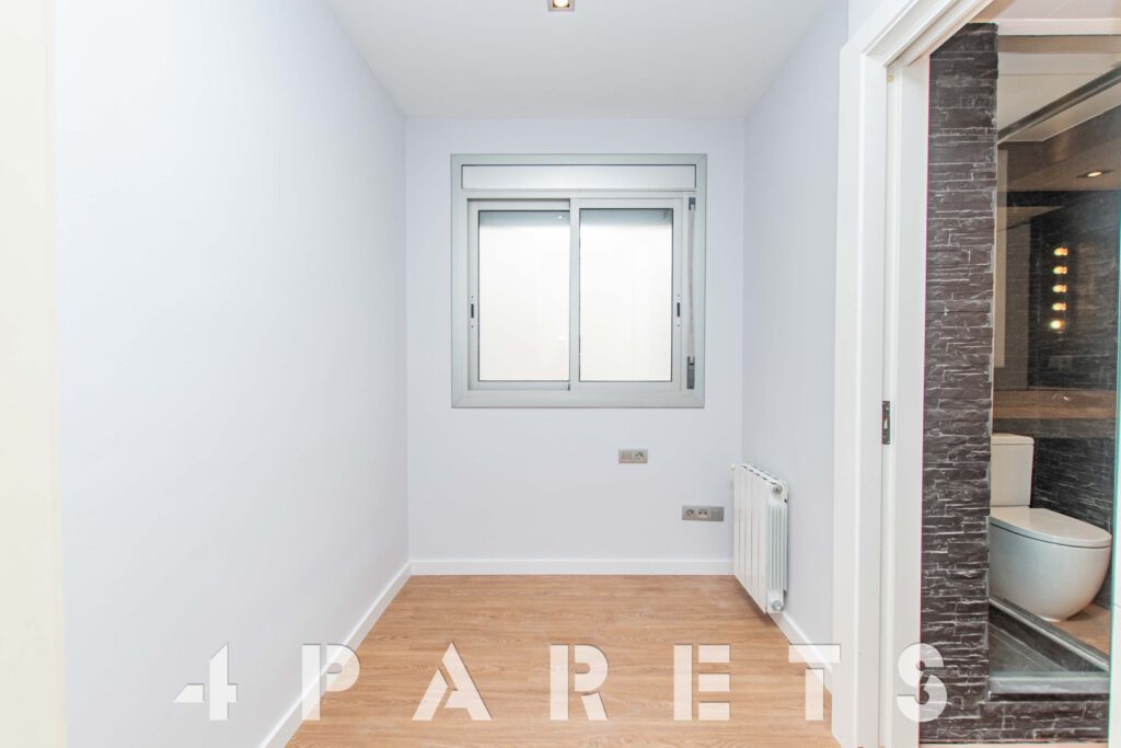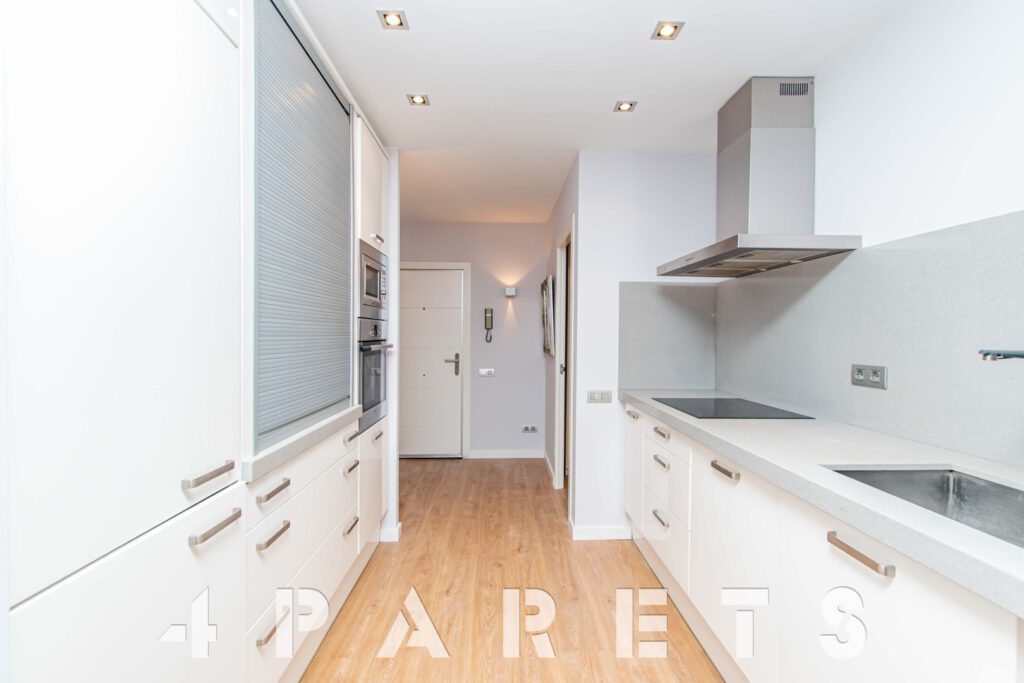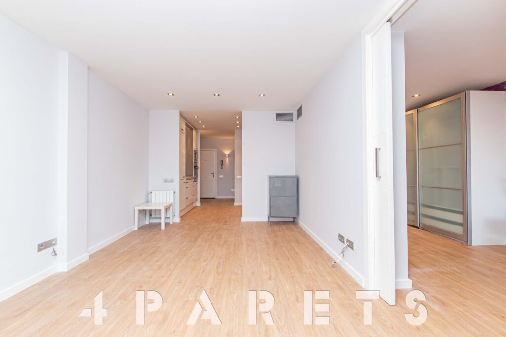 Recibidor de entrada que comunica con varias estancias: a mano izquierda con la habitación secundaria, una habitación individual con la peculiaridad que, desde el interior, tiene acceso directo al baño. Por otra parte, desde el recibidor también accedemos a la cocina, una cómoda cocina a banda y banda, equipada con gran espacio de trabajo, placa vitrocerámica, horno, microondas, lavavajillas y nevera con congelador. Cruzando la cocina entramos al salón comedor, de tipología cuadrada y fácil de distribuir. Desde el salón tenemos paso, por una parte y mediante una impresionante puerta corredera, al dormitorio principal, el cual está equipado con armario y también tiene acceso directo al baño y salida a la terraza. Por otra parte, a una magnífica y luminosa zona de estudio abierta al salón. Un agradable espacio complementario ideal para instalar un punto de estudio o teletrabajo. Este espacio también tiene salida directa a la terraza.