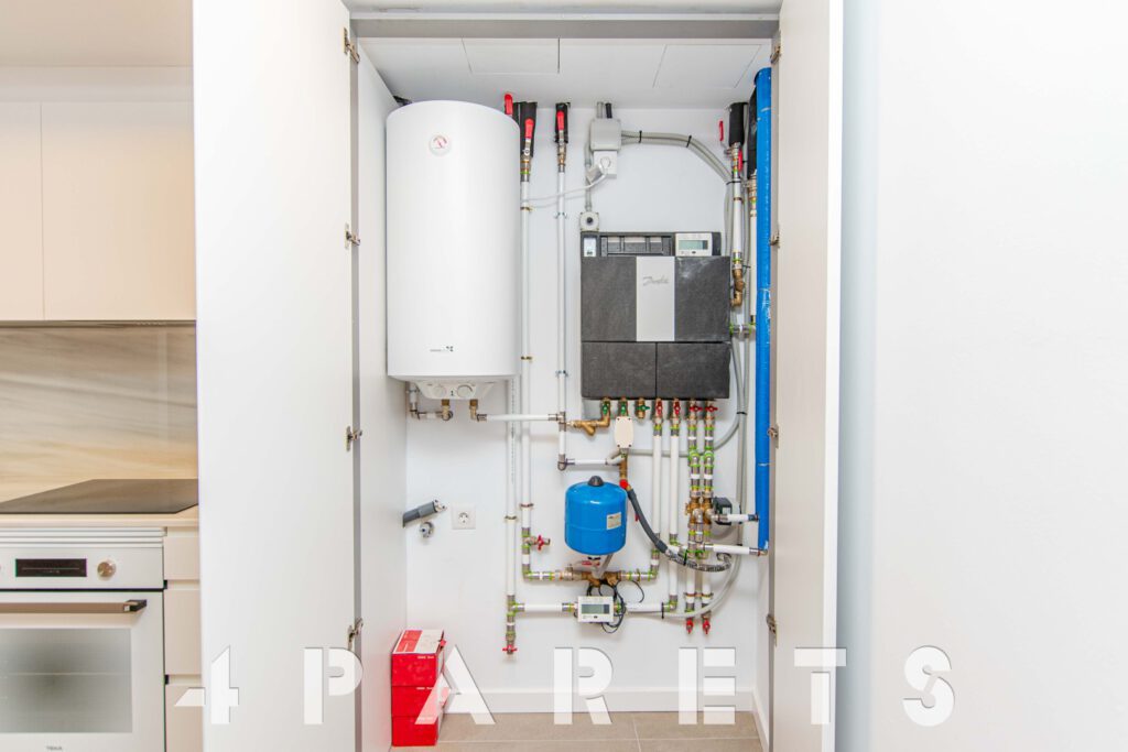 Respecto a los acabados y confort, poco que decir, ya que rozan la excelencia. El piso dispone de suelos de parquet en todas las estancias menos en los baños, aire acondicionado con bomba de calor por conductos en todo el piso, sistema eficiencia energética aerotermia, el cual proporciona un gran ahorro. Carpinterías exteriores con doble vidrio de alta calidad, iluminación por led, etc.