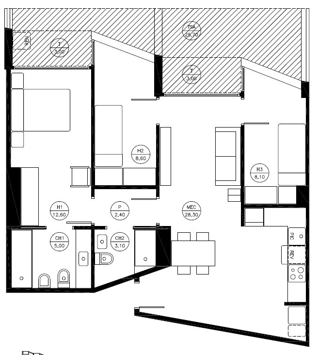 – Tipología cuadrada, distribución cómoda y casi funcional sin pasillos.