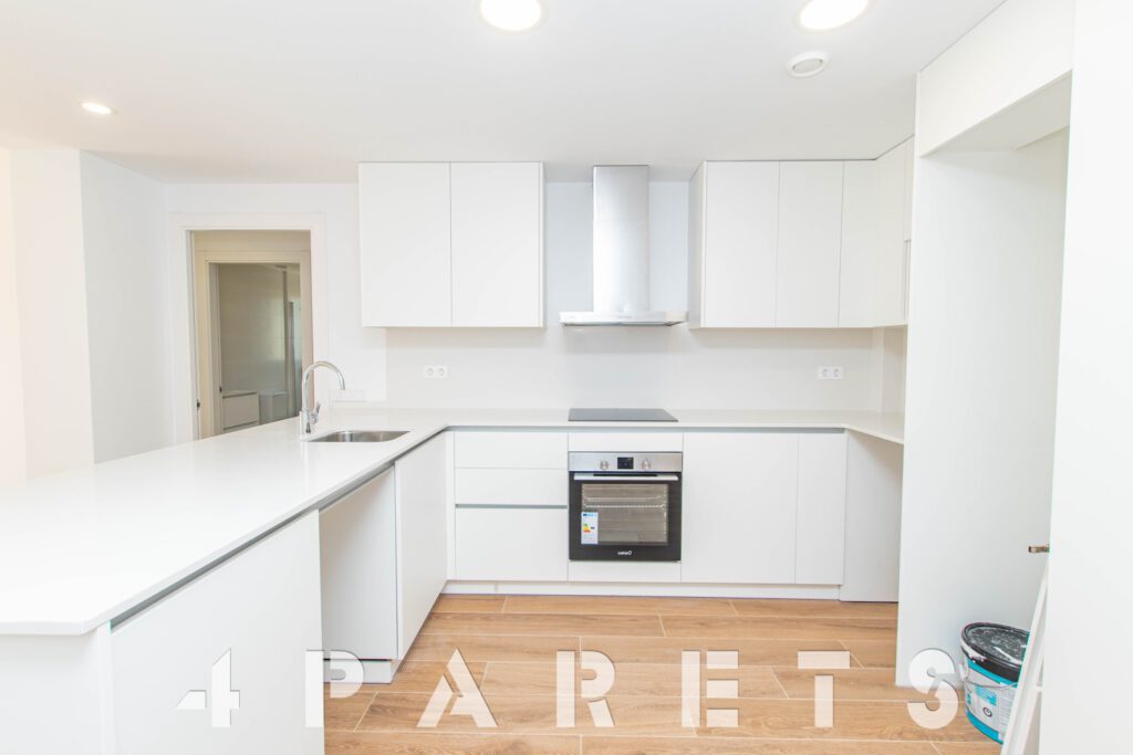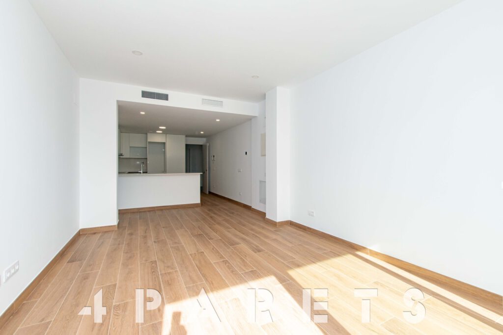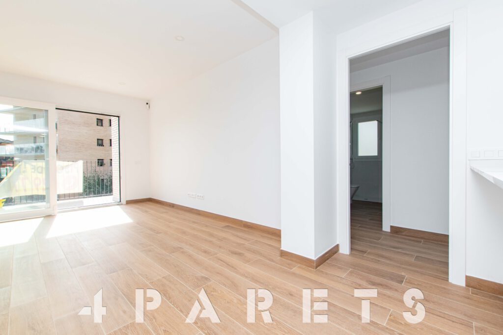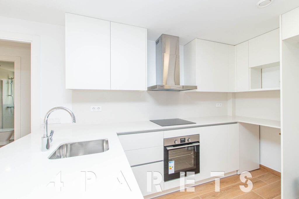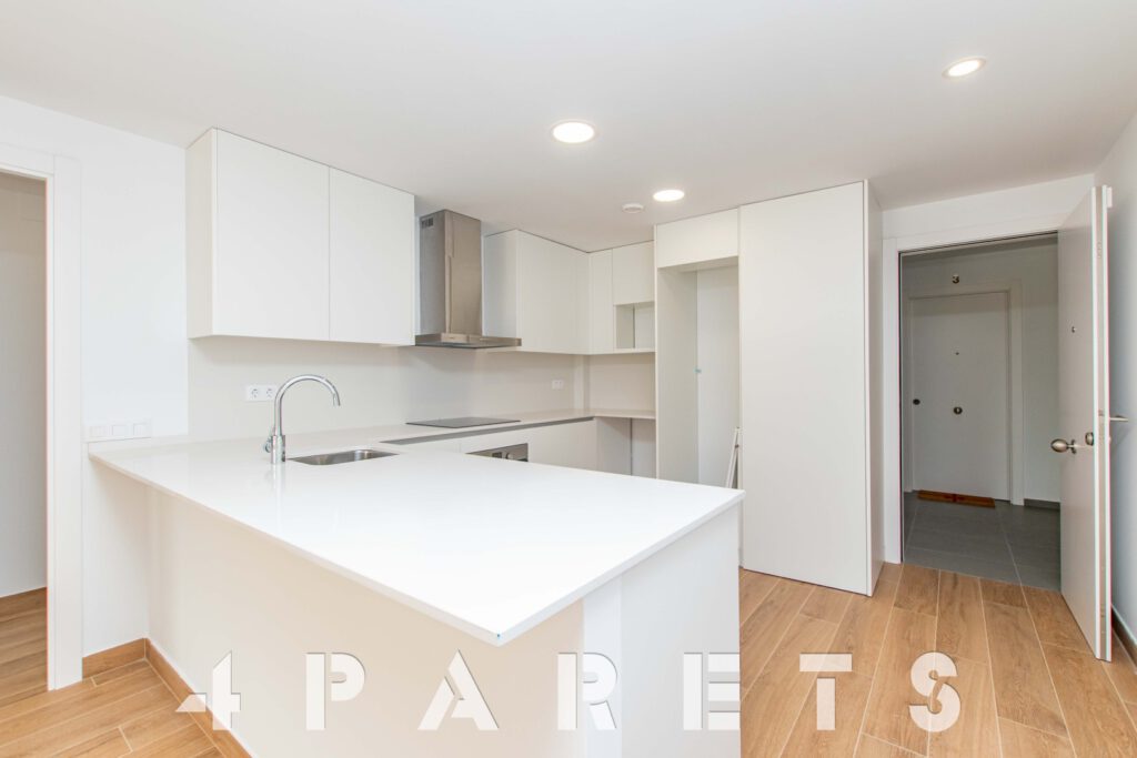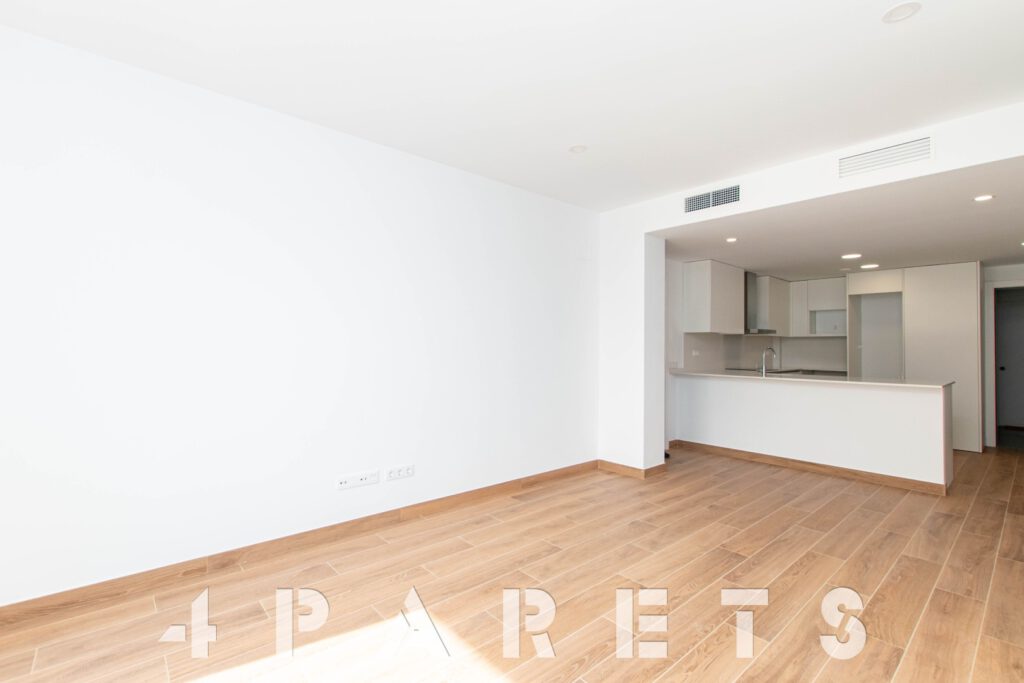 Tal y como entramos en el piso accedemos a la zona de cocina, abierta al comedor salón, aunque situada a un extremo de la estancia. Desde el salón tenemos salida a un balcón que comunica también con el dormitorio principal.
