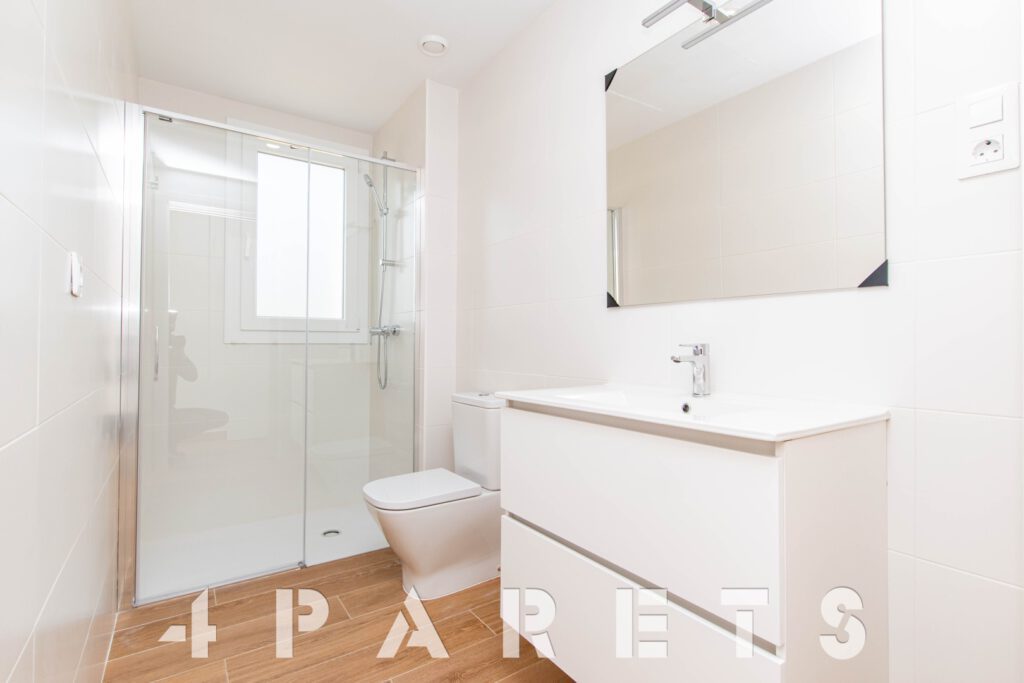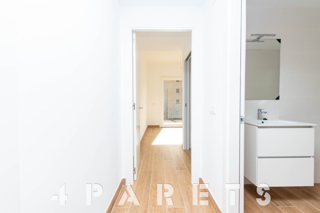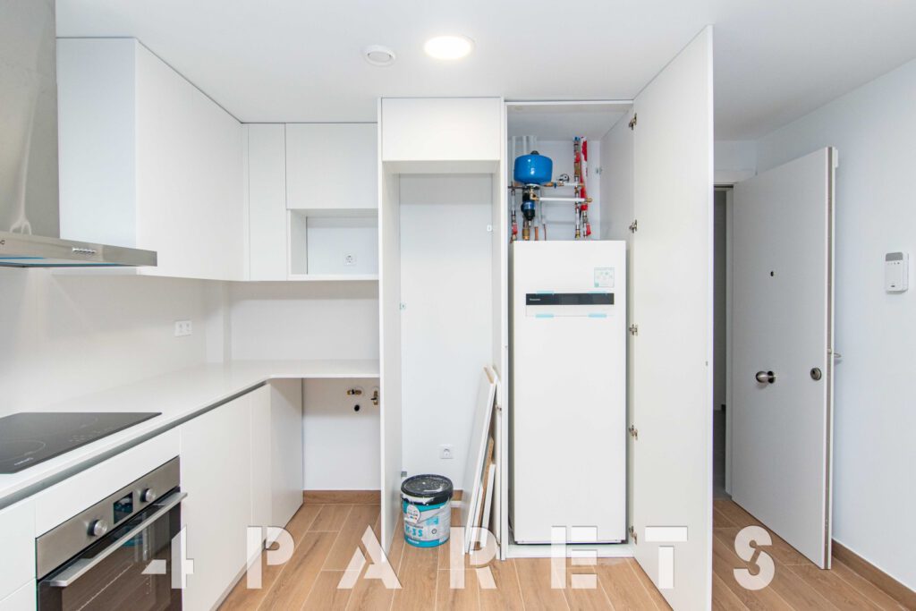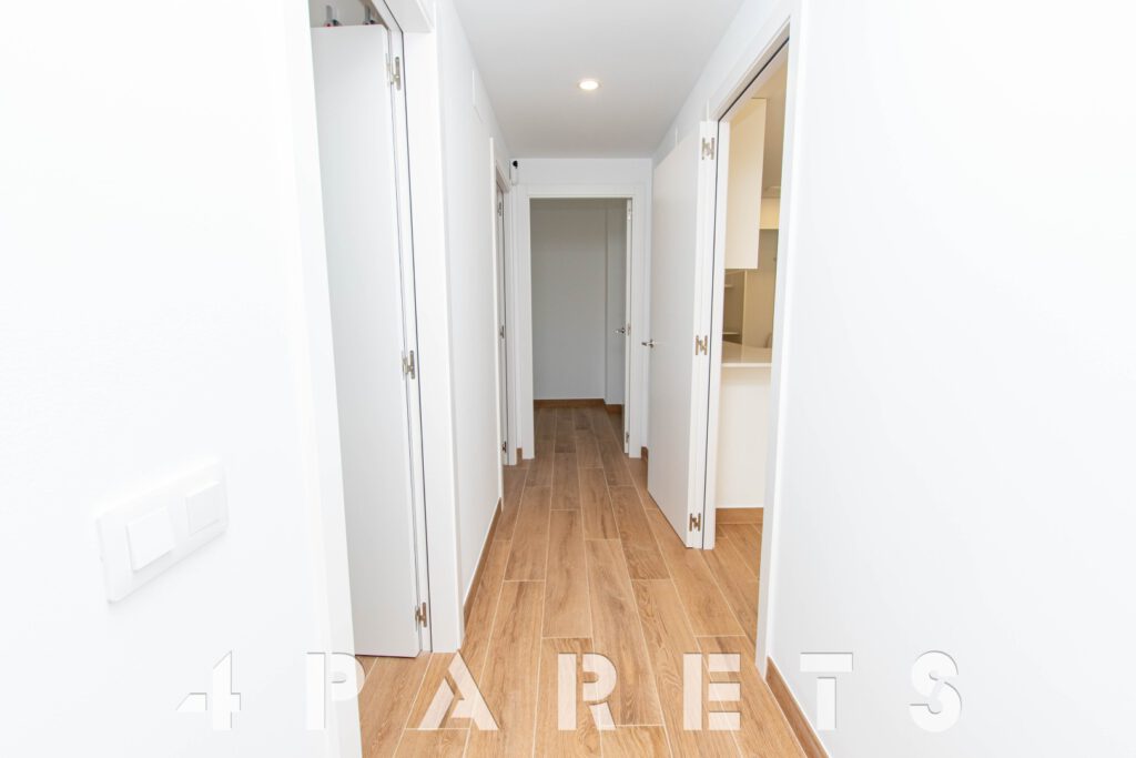 En cuanto a los detalles del piso, suelos porcelánicos imitación parquet, carpintería de aluminio con doble cristal y puente térmico, calefacción y aire acondicionado por conductos, aerotermia, videoportero y persianas automáticas.