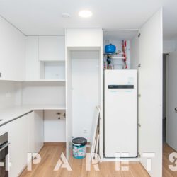 En cuanto a los detalles del piso, suelos porcelánicos imitación parquet, carpintería de aluminio con doble cristal y puente térmico, calefacción y aire acondicionado por conductos, aerotermia, videoportero y persianas automáticas.