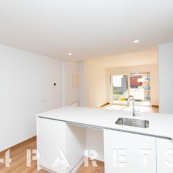 Tal y como entramos en el piso accedemos a la zona de cocina, abierta al comedor salón, aunque situada a un extremo de la estancia. Desde el salón tenemos salida a un balcón que comunica también con el dormitorio principal.