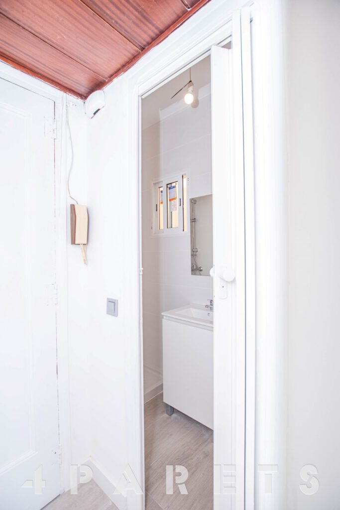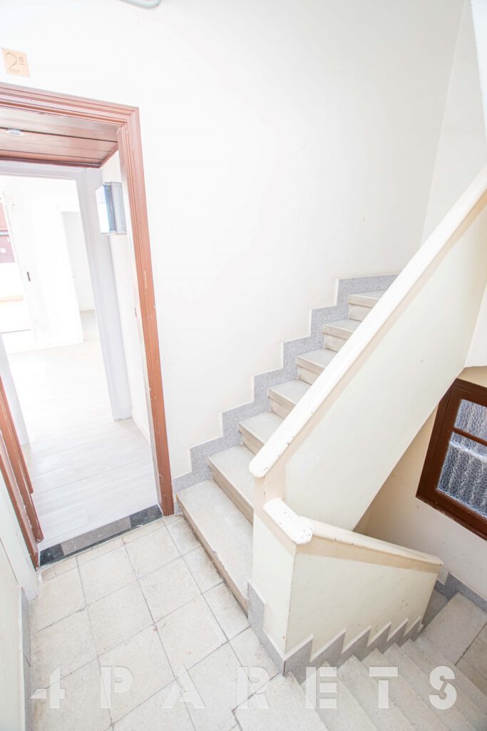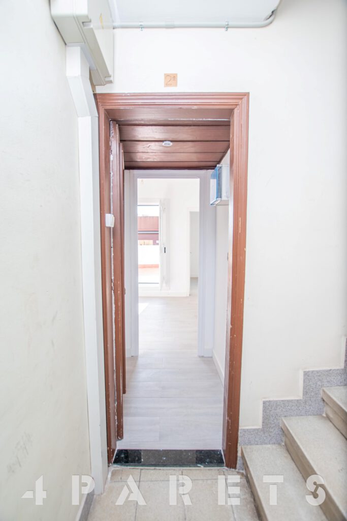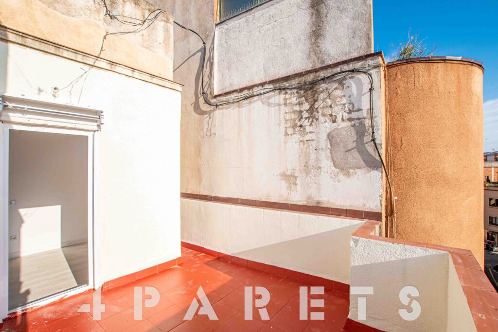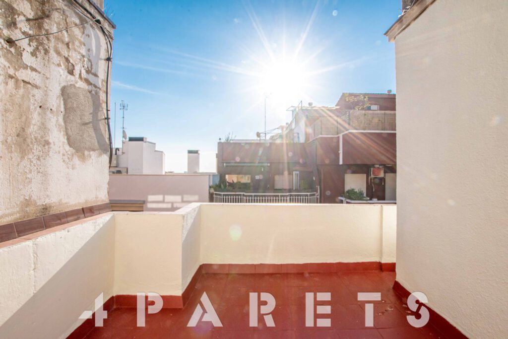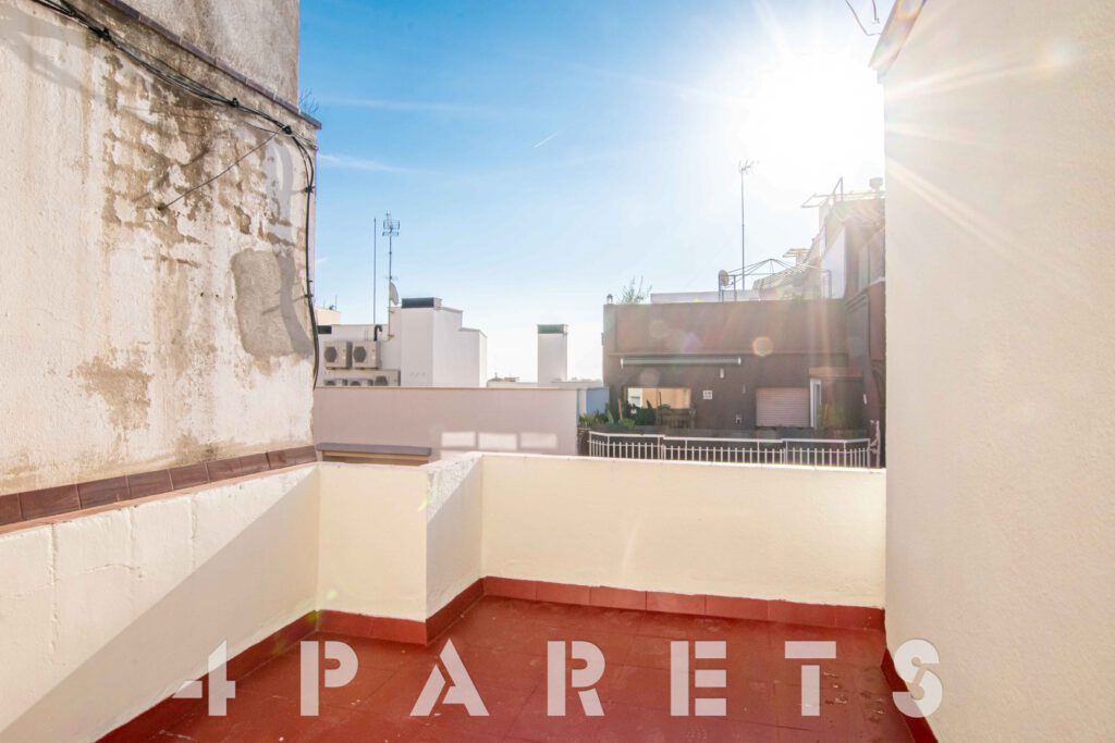 En cuanto a la finca, fue construida en el 1949, está formada por tan solo 9 vecinos y, como único «pero», es que NO dispone de ascensor. La vivienda se ubica en la cuarta y última planta del edificio. Está formada por 42m2 construidos y 12m2 de terraza.