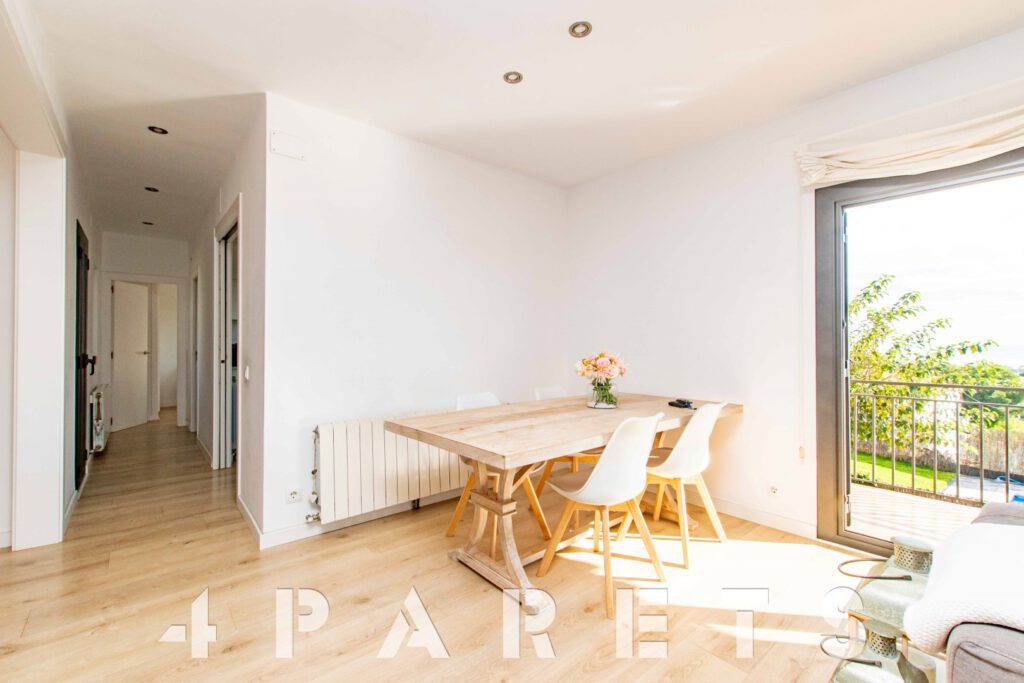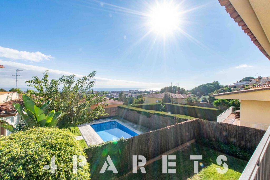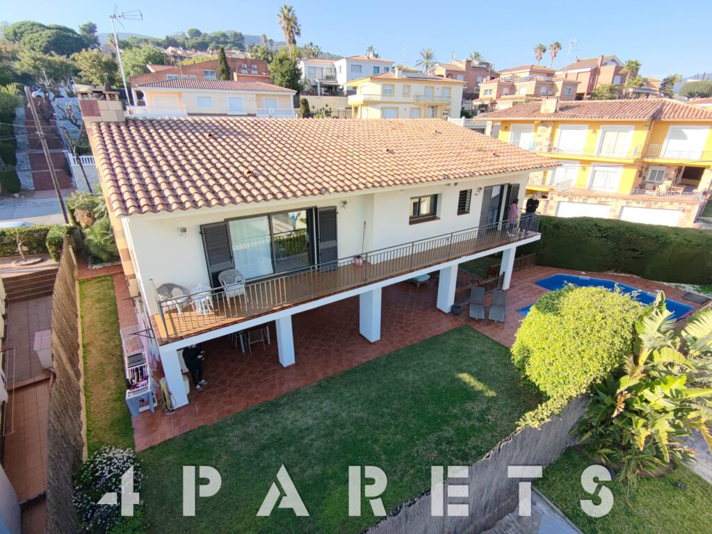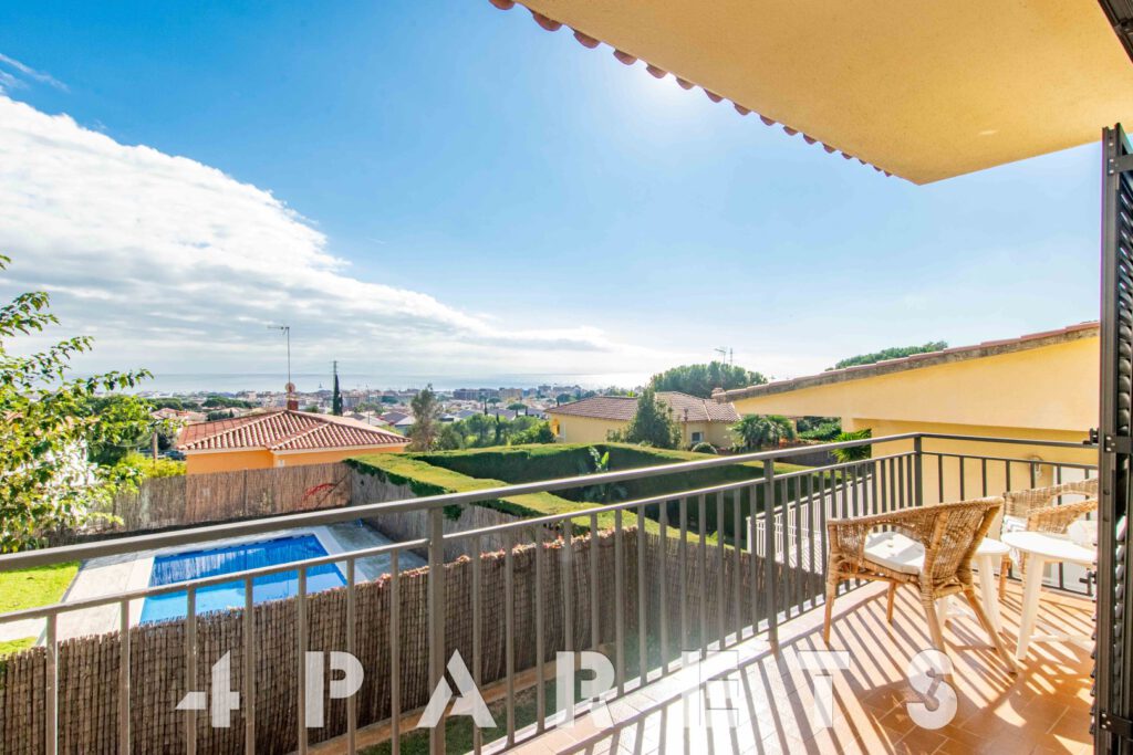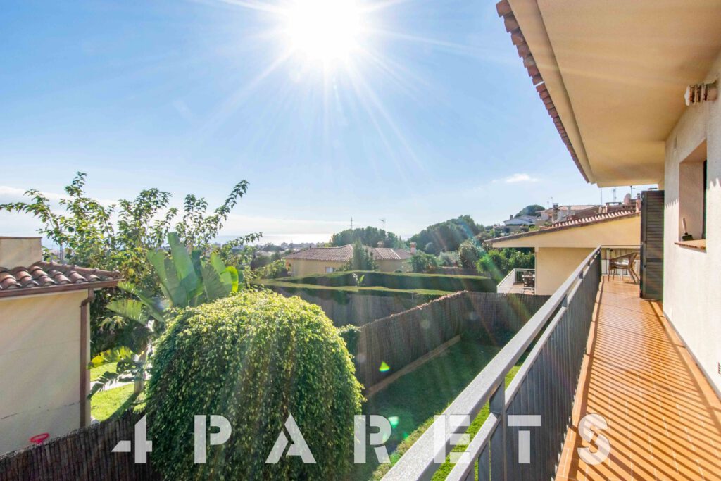– En la planta principal (1ª planta respecto a la calle y al jardín y con acceso mediante unas escaleras), disponemos de la zona de día, formada por un espectacular salón comedor con chimenea, esquinero y absolutamente exterior, orientado al mar y a Barcelona. Dispone de salida a un balcón esquinero con vistas al mar y al jardín de la casa. En esta misma planta disponemos de la cocina independiente, también con mucha luz, equipada con placa vitrocerámica, horno y microondas en columna. Para facilitar la funcionalidad de la casa, en esta misma planta disponemos 4 habitaciones, todas ellas dobles y 2 cuartos de baño equipados con plato de ducha.