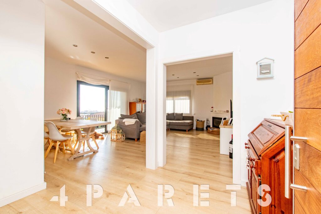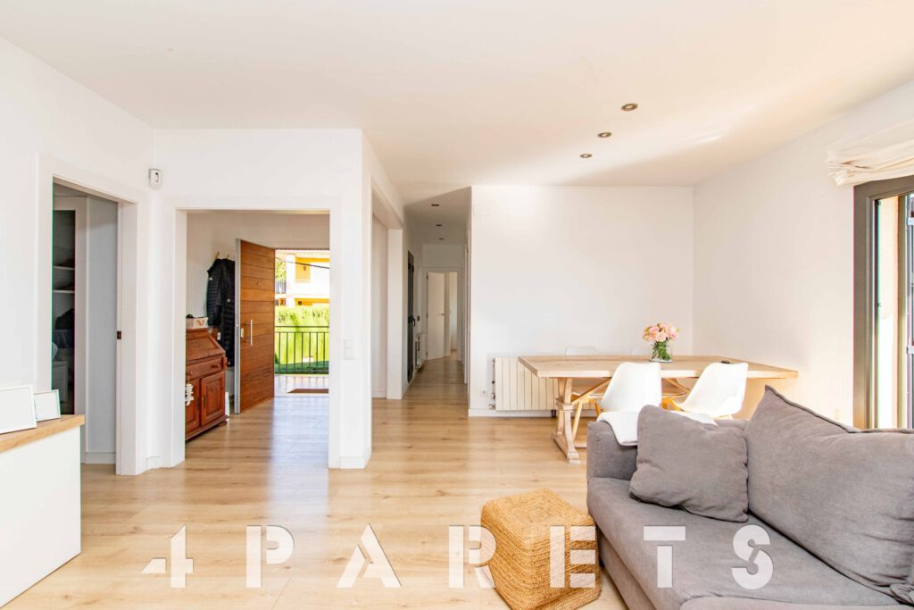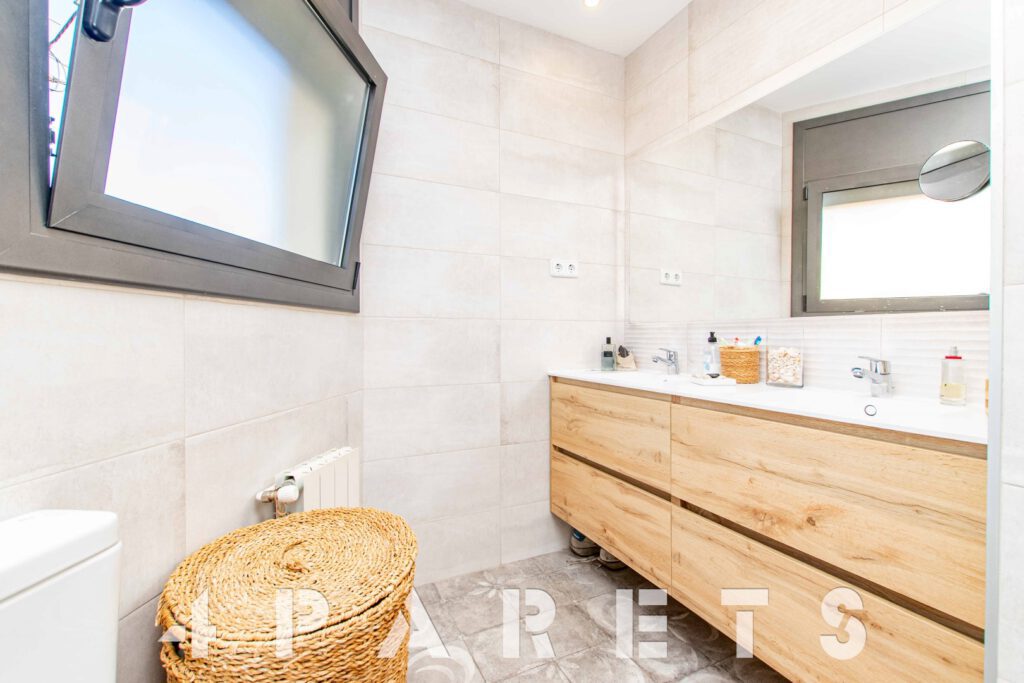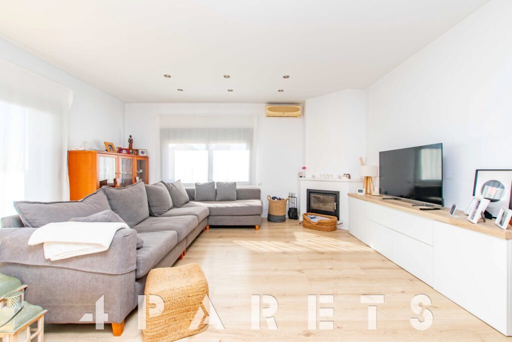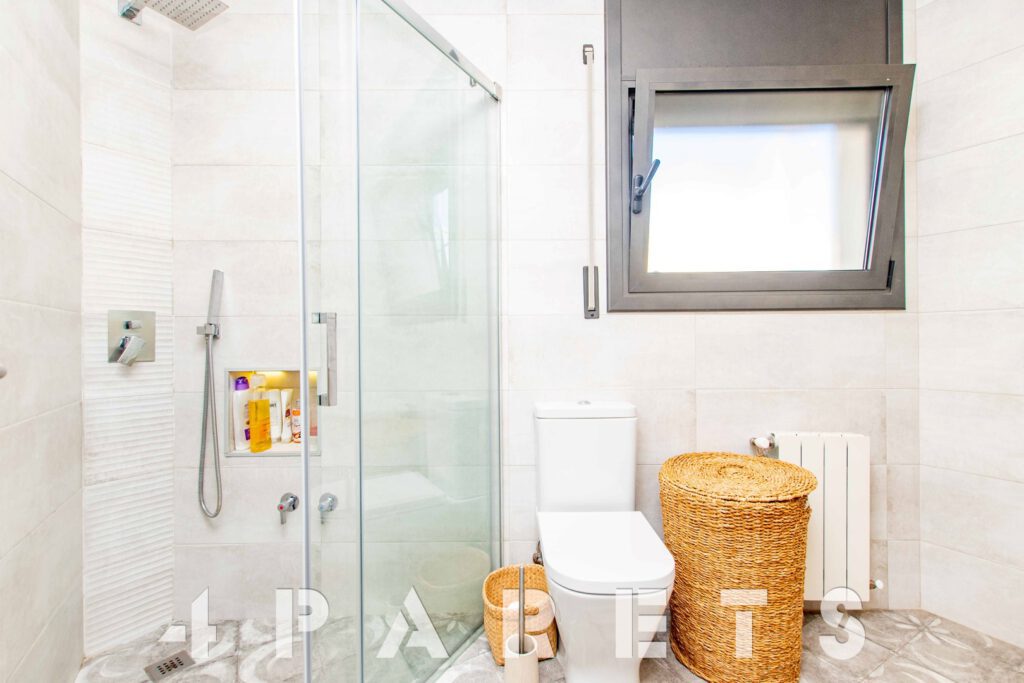 – En la planta principal (1ª planta respecto a la calle y al jardín y con acceso mediante unas escaleras), disponemos de la zona de día, formada por un espectacular salón comedor con chimenea, esquinero y absolutamente exterior, orientado al mar y a Barcelona. Dispone de salida a un balcón esquinero con vistas al mar y al jardín de la casa. En esta misma planta disponemos de la cocina independiente, también con mucha luz, equipada con placa vitrocerámica, horno y microondas en columna. Para facilitar la funcionalidad de la casa, en esta misma planta disponemos 4 habitaciones, todas ellas dobles y 2 cuartos de baño equipados con plato de ducha.