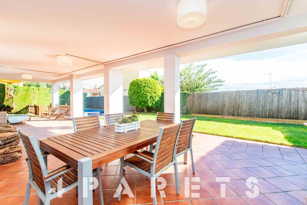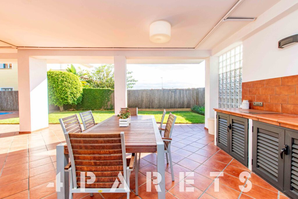 – Por último, la planta baja, multifunción, para poder usarla como apartamento, cuarto de invitados, para el servicio o incluso despacho profesional si se necesita. Dispone de dos ambientes, un aseo de cortesía (se podría hacer una ducha) y un amplio trastero. Todo ello con la ventaja de ser totalmente exterior, ya que se encuentra al mismo nivel que el jardín, y vaya jardín !! Rodea completamente la casa, con un precioso espacio para comedor de verano, zona de barbacoa, chill out, piscina y césped natural.