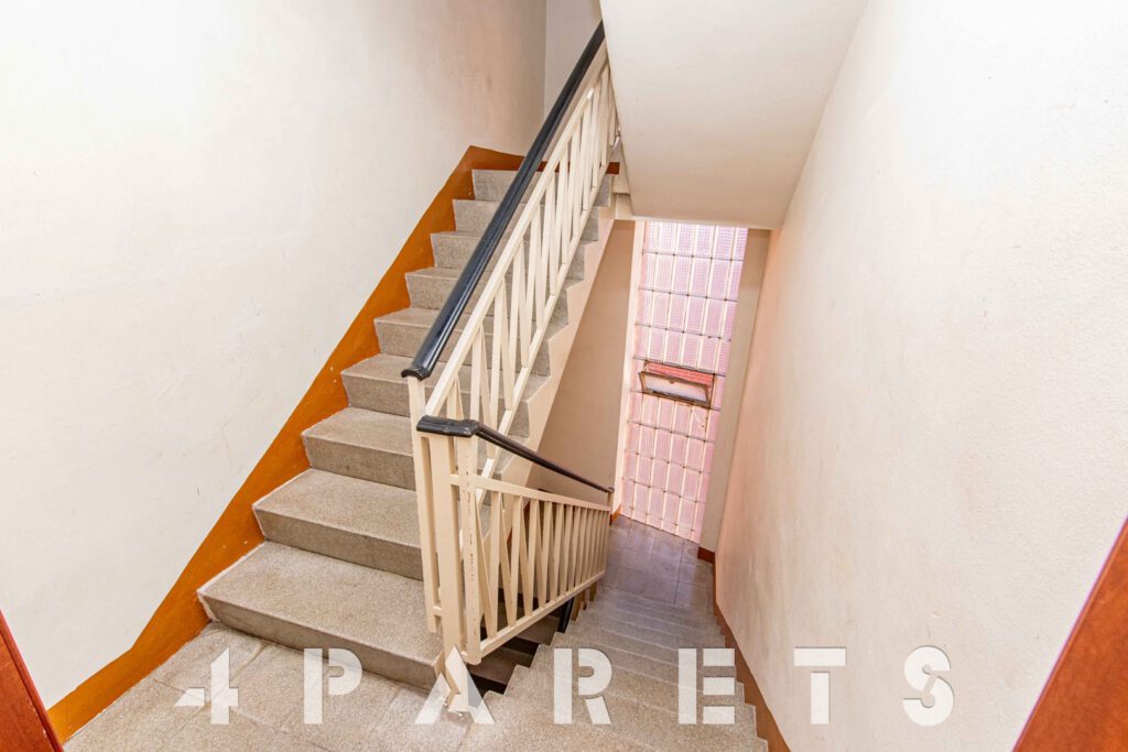 La vivienda se sitúa en la segunda planta del edificio, una finca de tan solo cuatro vecinos, uno por rellano, construida a finales de los años 60 y sin ascensor. El piso está formado por un total de 68 m2 construidos perfectamente distribuidos y con dos fachadas de ventilación, un punto muy positivo a la hora de disponer de buena ventilación, sensación de exterior y luz natural.