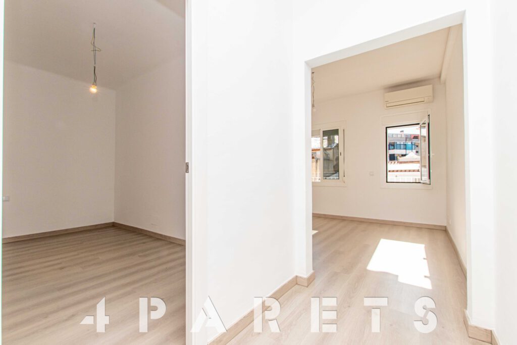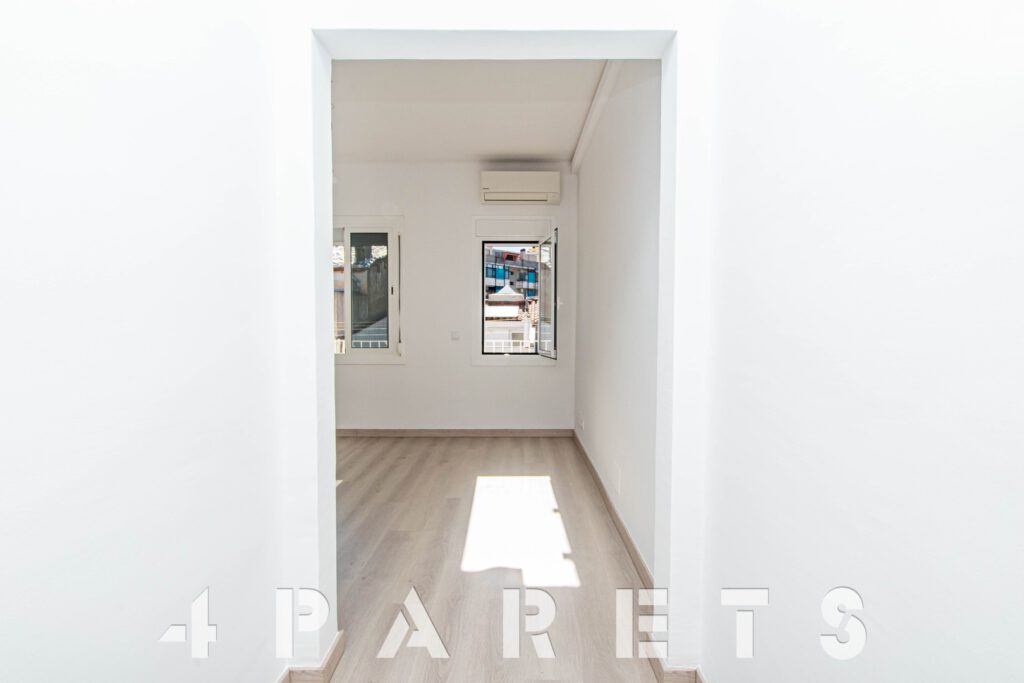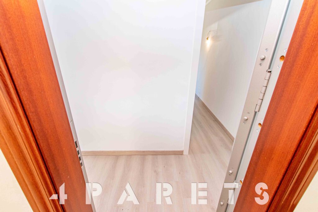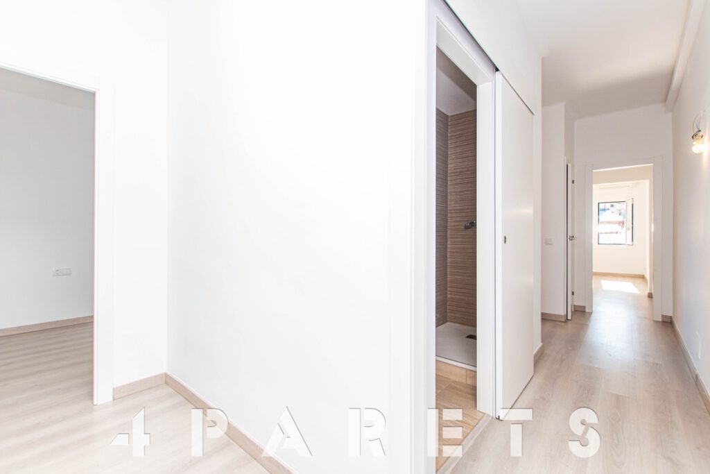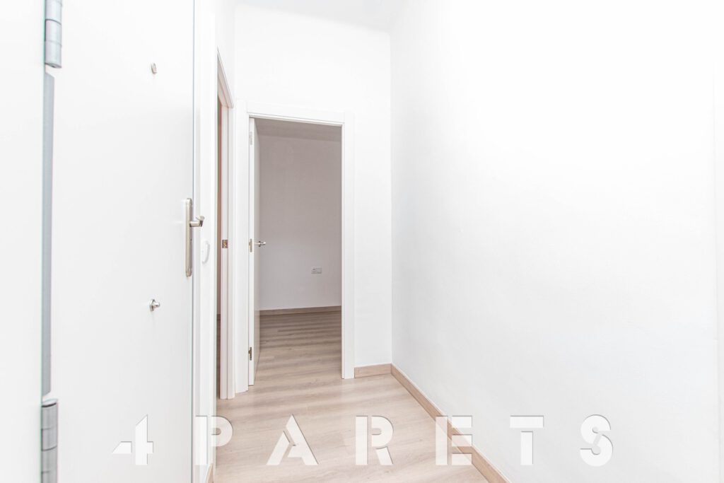 Recibidor de entrada a modo de pasillo principal de la vivienda. A mano izquierda encontramos dos de las tres habitaciones de las que dispone la vivienda: una habitación de matrimonio principal con orientación y ventilación a la calle y una habitación individual con ventilación al patio de luces, todo y que con mucha luz natural. A continuación, y siguiendo el pasillo, disponemos del baño, un impecable baño completo equipado con plato de ducha y ventana al mismo patio de luces. Más adelante, el pasillo nos ofrece un agradable descansillo con una ventana para iluminarnos lo que, en la mayoría de las ocasiones, sería una zona oscura. Pues en este caso no. Justo al lado tenemos un pequeño trastero, ideal para almacenar material de limpieza, recambios, etc. Como última estancia con orientación al patio de luces, disponemos de la tercera habitación. Una habitación de tamaño mediano.