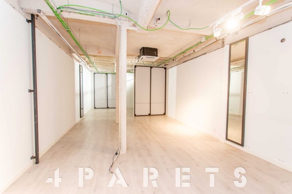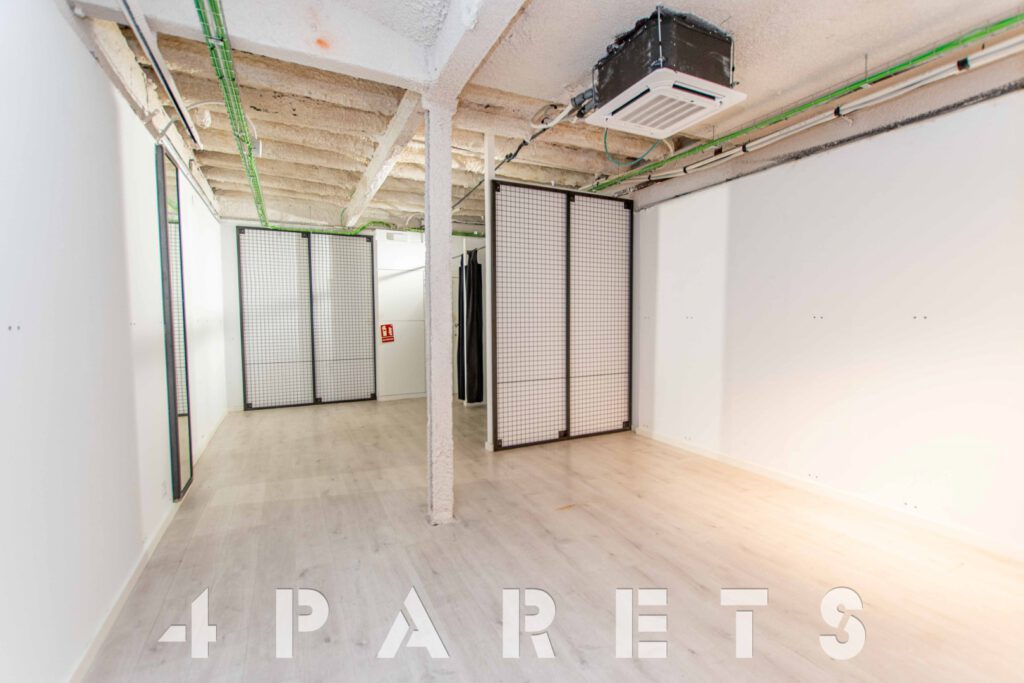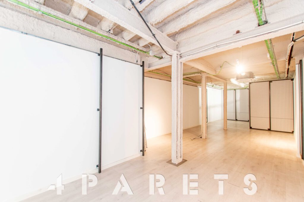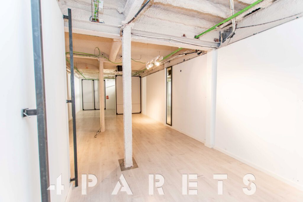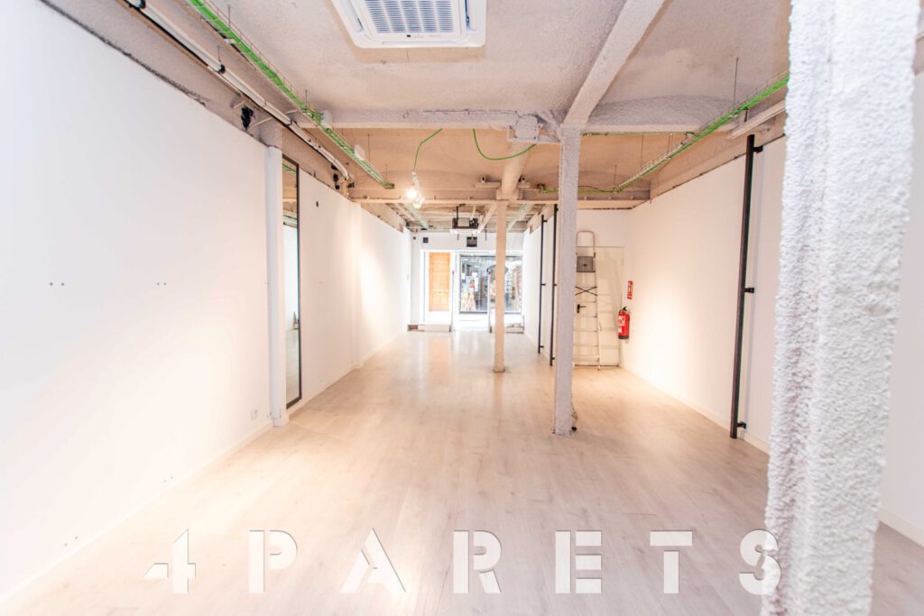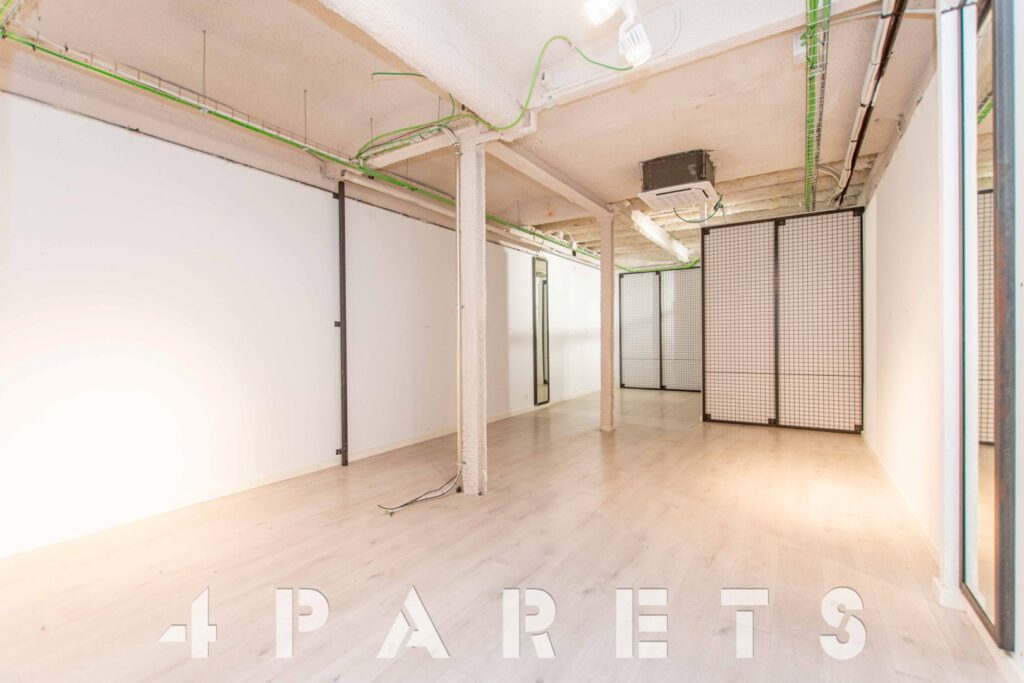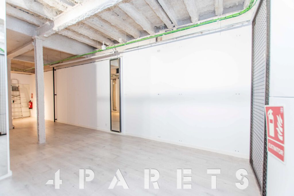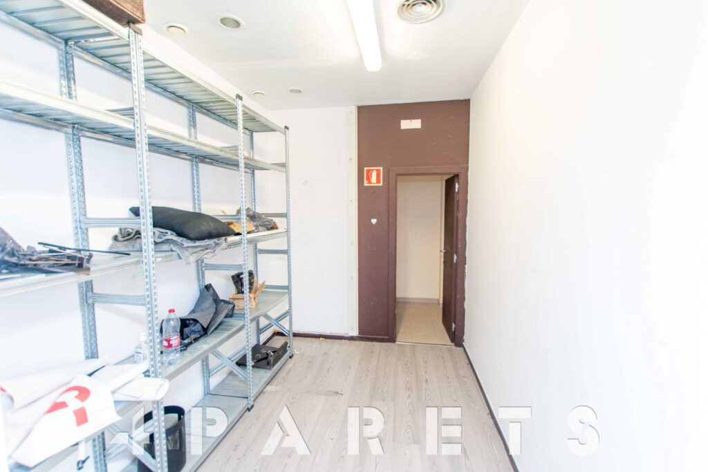 En cuanto a la distribución, completamente diáfano y con un pequeño almacén en la parte posterior, donde también encontramos un cuarto de baño.