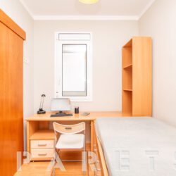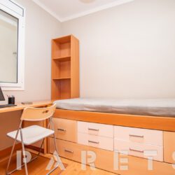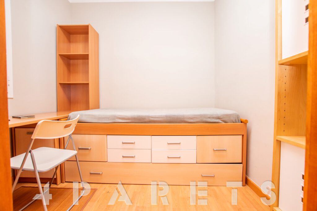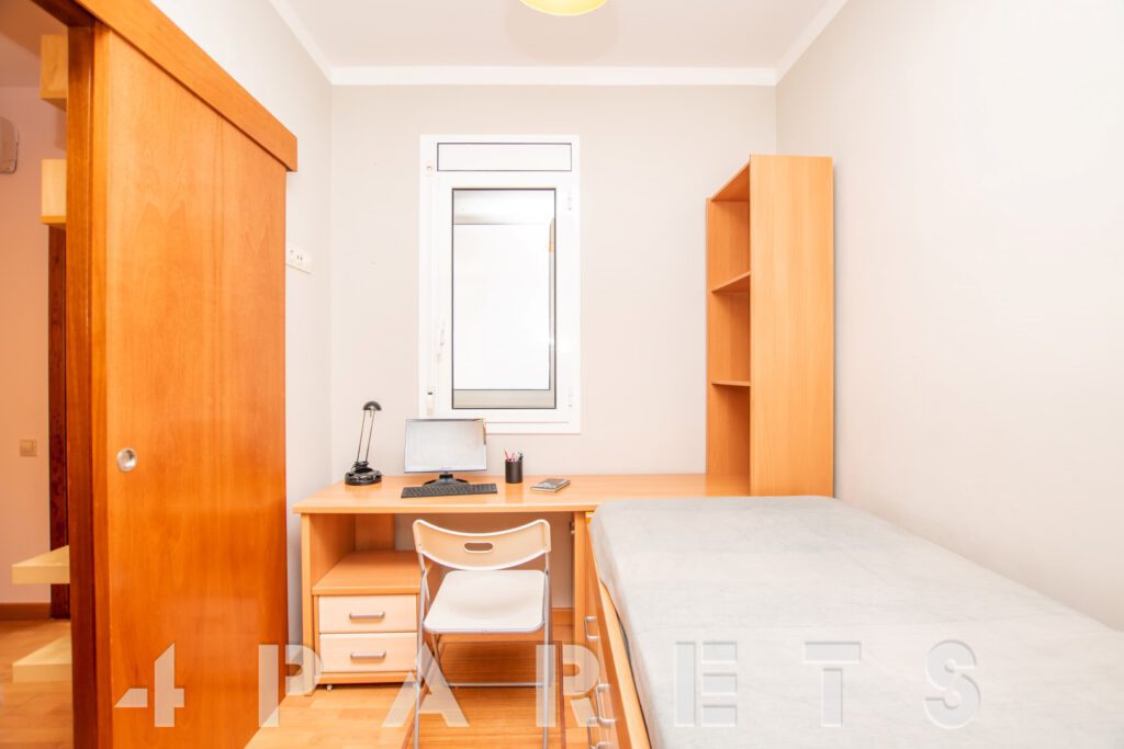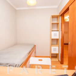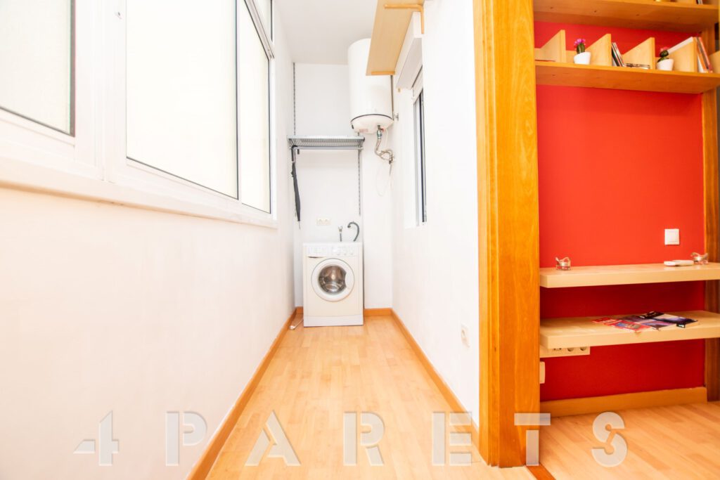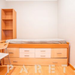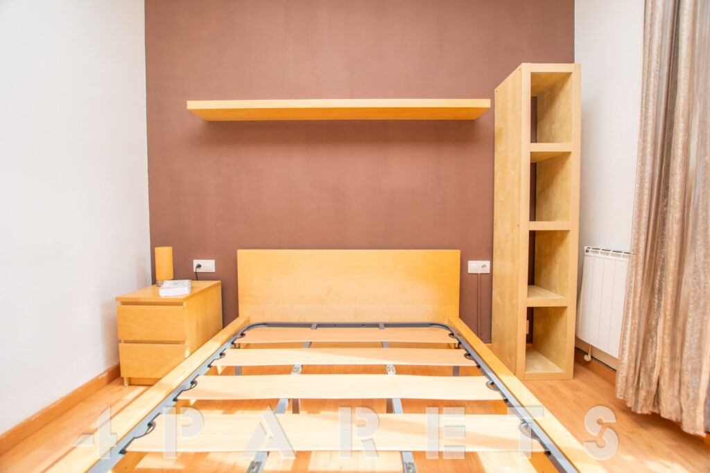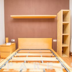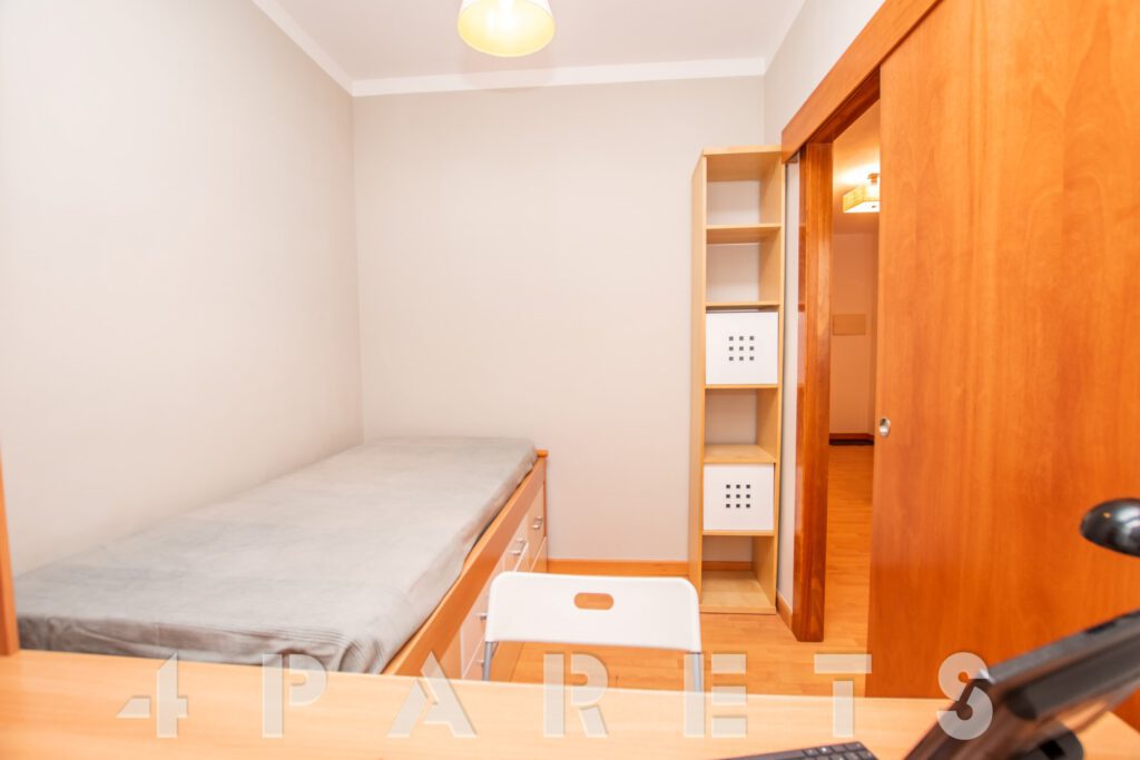 En la zona de noche contamos con 2 habitaciones, una en cada extremo del piso. La individual, con ventilación a la estupenda galería, donde poder colocar la lavadora y tener una zona de almacenaje. A la fachada principal ventila la habitación de matrimonio, con salida directa a un balconcito.