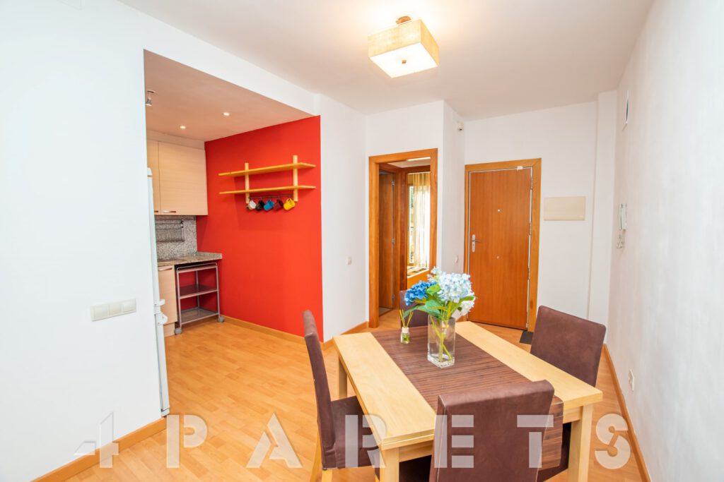 En cuanto a la distribución, entramos directamente al salón comedor, en un solo ambiente pero bien diferenciado. Justo delante tenemos la cocina, en este caso abierta al comedor, pero apartada, no da la sensación que forma parte del salón.