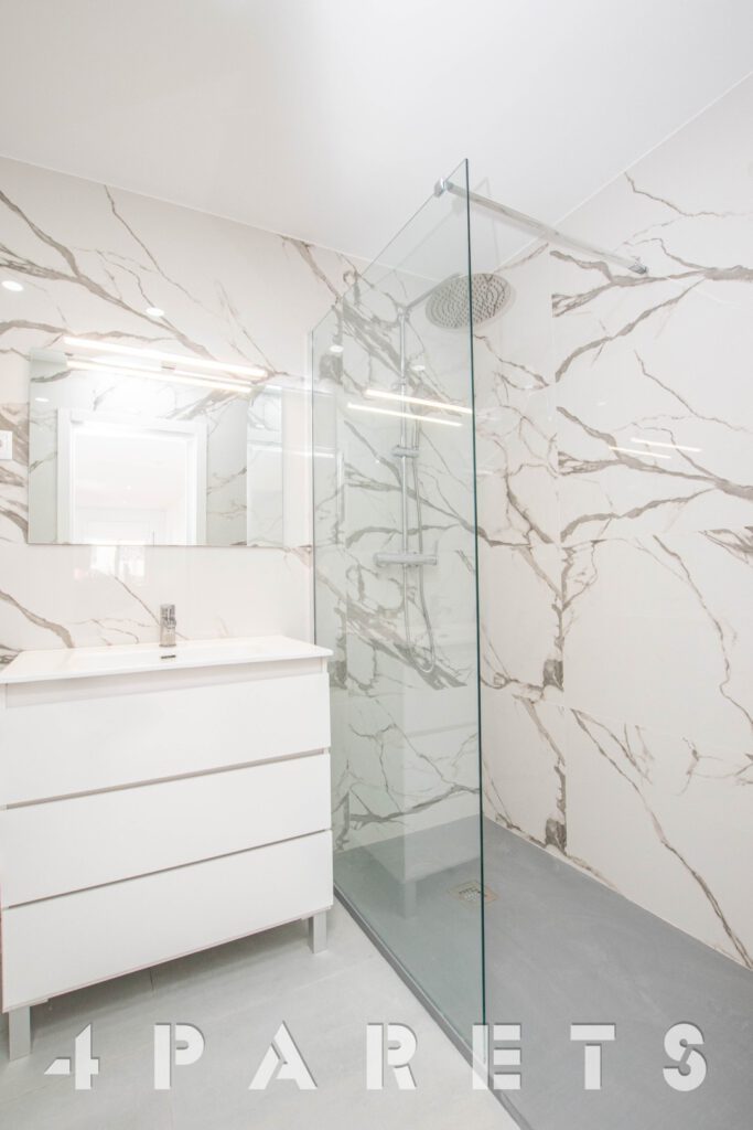 Un precioso cuarto de baño, con un gran plato de ducha con mampara de cristal.