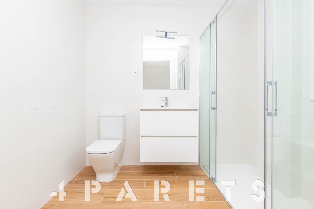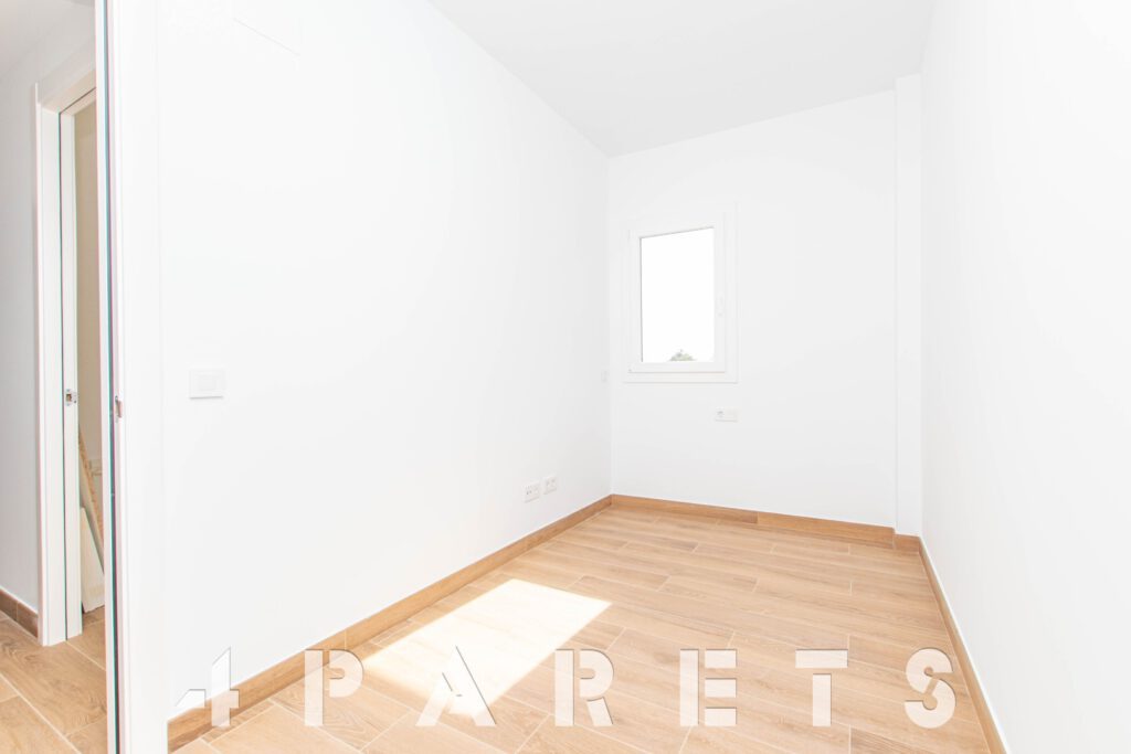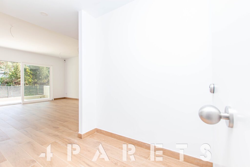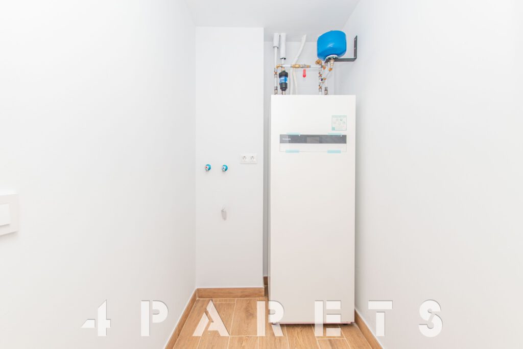 En cuanto a los detalles del piso, suelos porcelánicos imitación parquet, carpintería de aluminio con doble cristal y puente térmico, calefacción y aire acondicionado por conductos, aerotermia, videoportero y persianas automáticas.