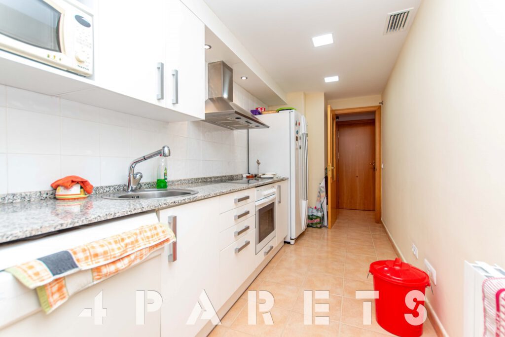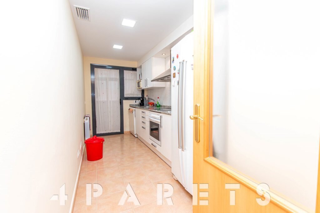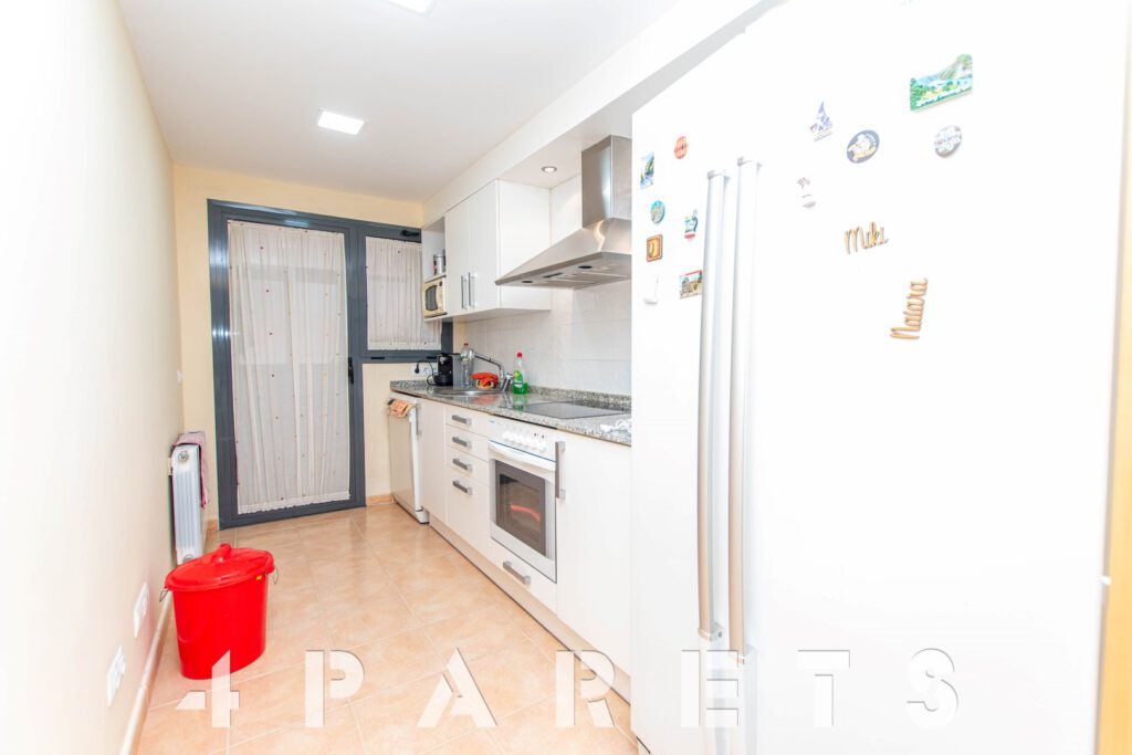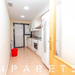 Buen recibidor de entrada que da paso primero a la cocina, independiente del comedor, con buen espacio de almacenaje y equipada completamente con amplia nevera, vitrocerámica y lavaplatos. Acceso directo al lavadero, la cual cuenta con lavadora.