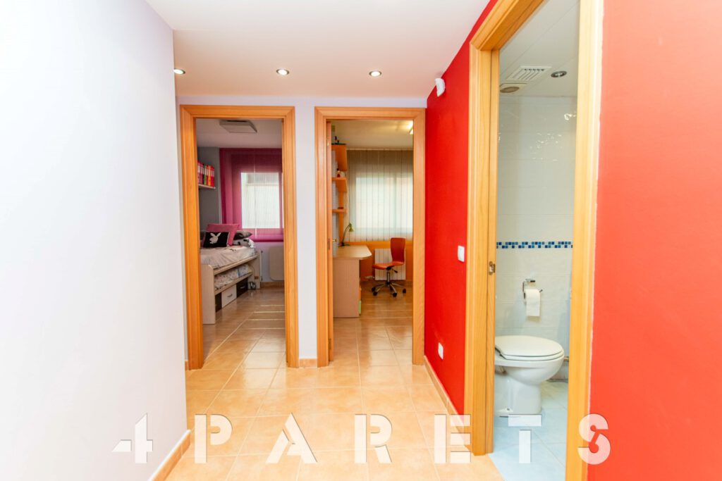En la zona de noche tenemos un total de 3 habitaciones, la principal es doble, con armarios empotrados y con un cuarto de baño en suite, completo de cuatro piezas y con bañera. Las otras dos habitaciones, una de ellas de tamaño mediano grande y la tercera mediana. Otro cuarto de baño completo, en este caso con plato de ducha.