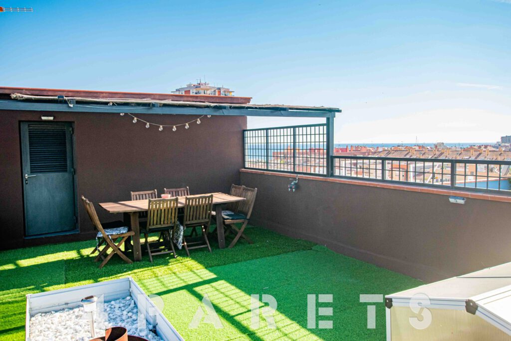 Y ahora viene lo mejor, en la planta superior, a la cual se accede desde la escalera comunitaria, una impresionante terraza de uso privado !! Con unas preciosas vistas a Mataró, sol todo el día, un lugar ideal para tus reuniones de familia, fiestas, amigos, bbq …