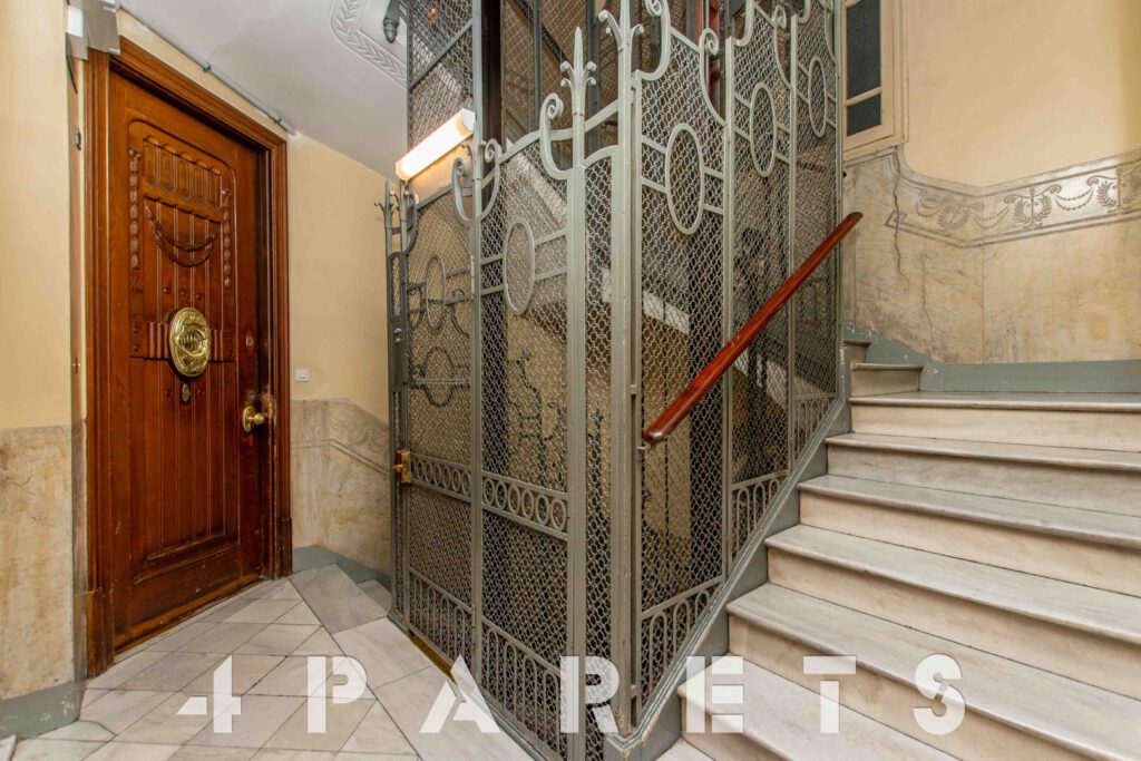 Se encuentra en la primera planta (segundo real) de un extraordinario edificio señorial construido en el 1910, perfectamente mantenido, con conserje y ascensor.