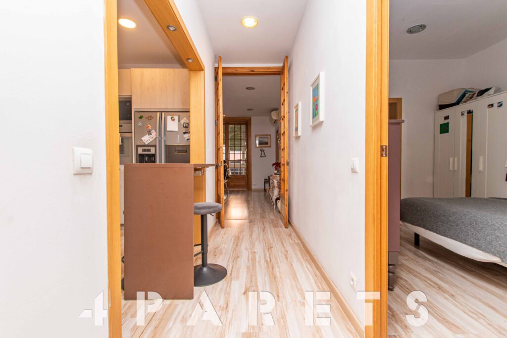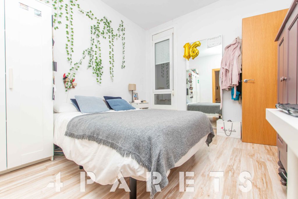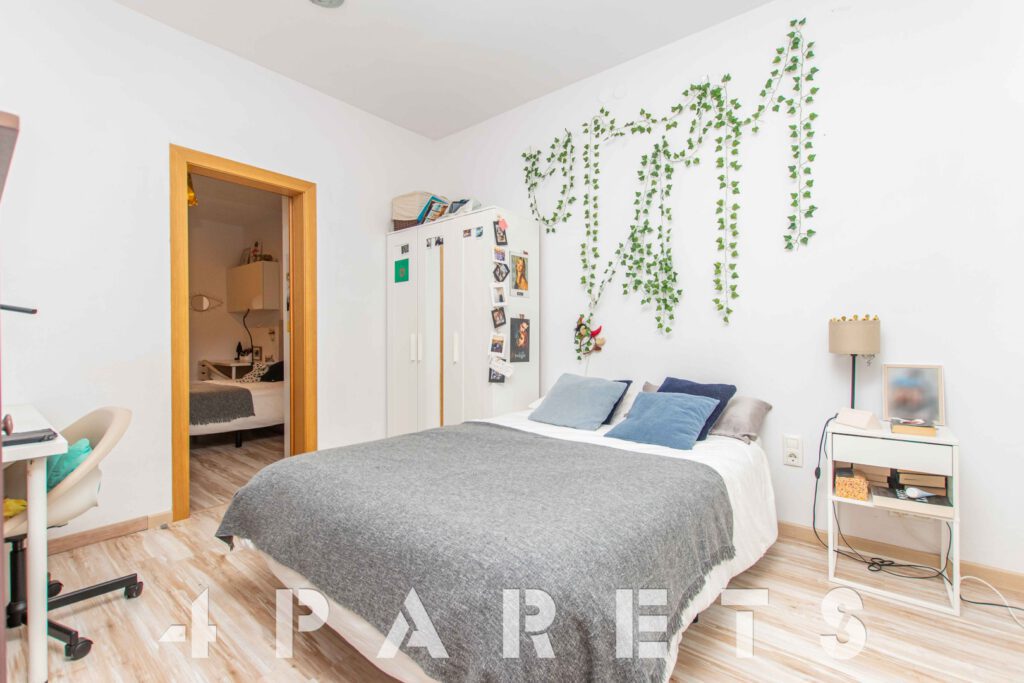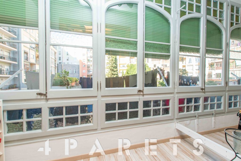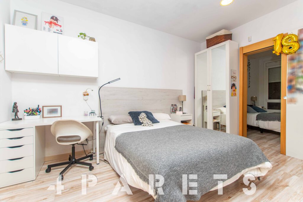 A continuación, nos encontramos con un segundo salón, el cual puede llegar a tener múltiples usos: dormitorio, salón, comedor, zona de juego, zona de estudio, etc. Anexos a esta sala disponemos de dos dormitorios más, ambos dobles y comunicados entre ellos. Por último, en el extremo del piso, podemos disfrutar de una extraordinaria galería muy bien integrada con el interior de la vivienda, equipada con un gran ventanal y orientada al patio de manzana. Ideal para tender la ropa.