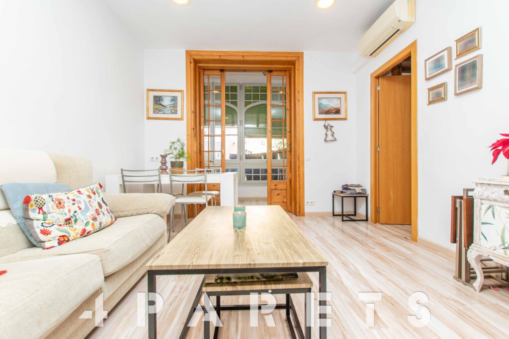 En cuanto a su distribución, entrando al piso a mano derecha, dispone de un espectacular salón comedor de tipología bastante cuadrada y con dos salidas directas al balcón, un generoso balcón con capacidad más que de sobras para poder colocar una mesita de exterior y poder disfrutar del agradable sol de mañana. En esta zona también disponemos de un primer dormitorio doble y, justo al lado, uno individual, ambos con ventilación al patio de luces.
