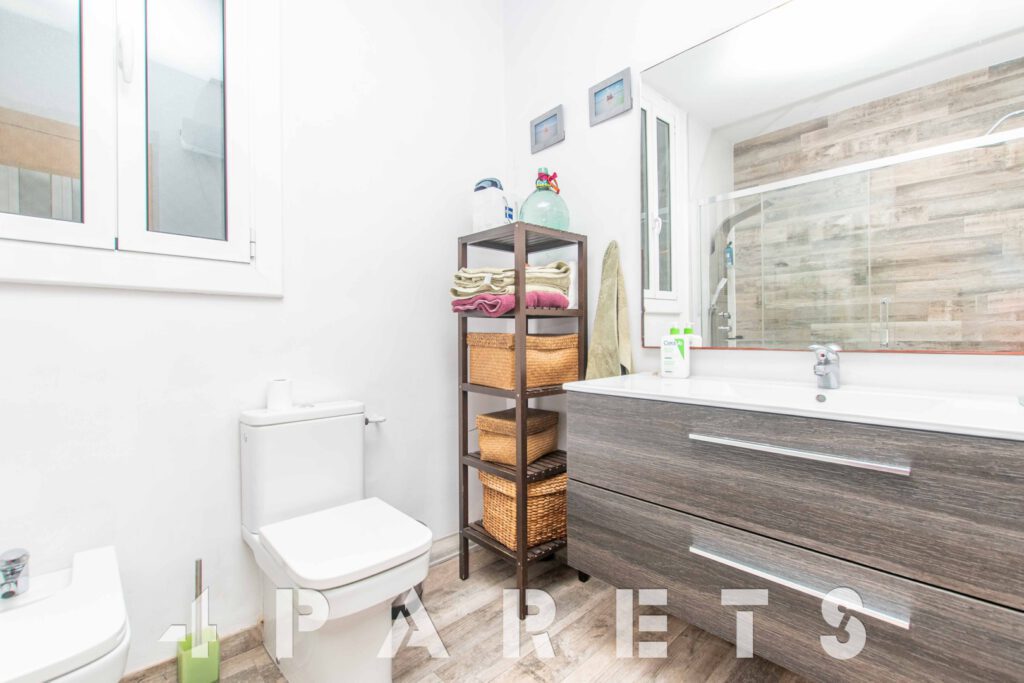En cuanto a la vivienda, dispone de 151m2 construidos, con una tipología rectangular y un pasillo que comunica con todas sus estancias. De tal modo que tiene dos fachadas de ventilación: sureste (mar) y noroeste (montaña y patio de manzana) y espectacular entrada de luz natural, tanto por la mañana, como por la tarde en sus estancias principales. La vivienda fue reformada en su totalidad (aunque todavía conserva su carpintería exterior de madera), aun así, a nivel estético está a la orden del día.